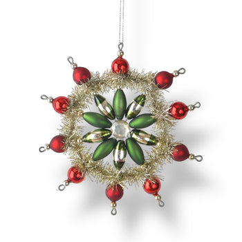 - Vintage Style Glass & Tinsel Snowflake Ornament GREEN