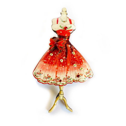 Get ready to sleigh the holiday season with our 50s Christmas Dress Brooch by Rosie Rose Parker. This charming resin brooch features a 3D bow and handplaced gems, making it the perfect accessory to elevate any festive outfit. Measuring at 6cm x 5cm, it's a must-have for all sewing enthusiasts and sure to be the star of any Christmas party!