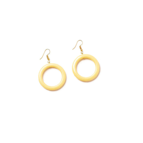 Indulge in the tart and tangy fun with our Lemon Heavy Carve Drop Hoop Earrings. These buttery yellow hoops feature carved resin, inspired by the iconic bakelite of the 1940s. Perfect for adding a touch of vintage whimsy to any outfit.