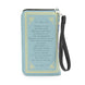- 1 zippered middle compartment; 7in detachable wristlet strap