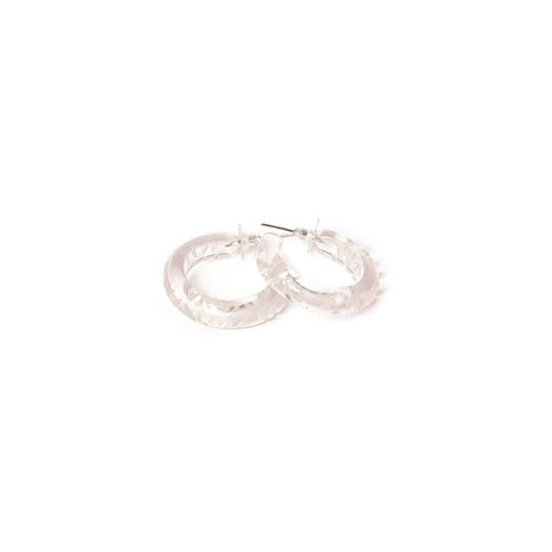 Elevate your style with our Crystal Heavy Carve Drop Hoop Earrings. Inspired by the glamour of the 1940s, these hand carved earrings are crystal clear and add a touch of sophistication to any outfit. Experience timeless elegance with every wear.