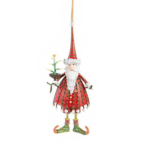 Santa and his merry crew of reindeer, elves, and the Mrs. are already prepping for their big night out! The Patience Brewster Dash Away Dashing Santa Ornament captures Santa reminding his crew to dash away to your house on Christmas! From his charmingly-checked red suit to the star-topped tree nestled in a tiny twig, this ornament’s a festive hit!