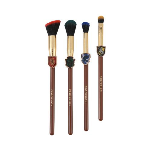 Harry Potter™ House Champions Face & Brush Set! This 4-piece set includes a foundation brush, powder brush, blending brush, and crease brush, all crafted with synthetic bristles for smooth, flawless application on both cream and powder formulas. Each brush is thoughtfully designed with