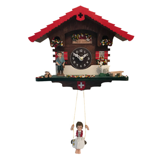 Quartz : This quartz model is powered by two ‘C’ batteries. The chalet and figurines, hand-carved from locally sourced wood, are made with the same loving care and devotion to detail as our mechanical clocks.