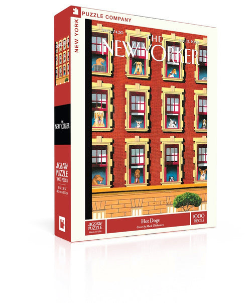The panting pooches look out their apartment windows with tongues wagging, patiently waiting for some outside playtime, as one clever kitty stays cool in the city heat.