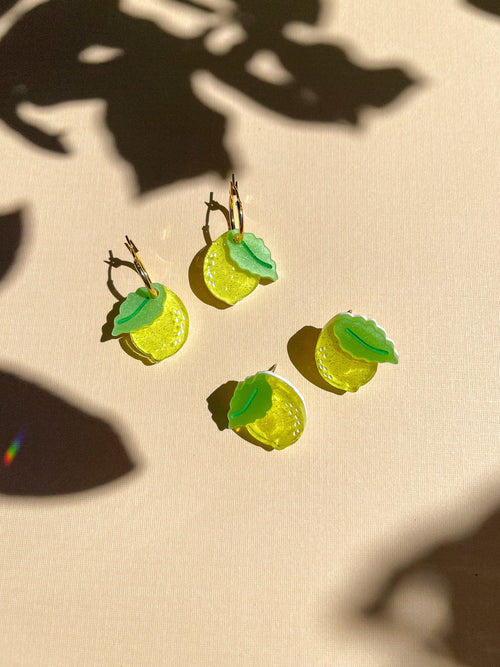 Made of acrylic with stainless steel, hypoallergenic hoops (optional); for studs, stainless steel post and butterfly. If you like different finding for the earrings, please leave a note at checkout or email us at hello@sunniecreative.com