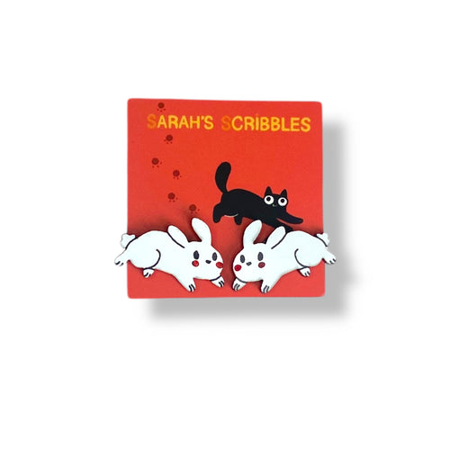 It's round two with illustrator Sarah's Scribbles! We collaborated with Sarah's Scribbles to make cute lil' bunnies in time for Easter, but rabbits are a year round thing so feel free to wear these earrings all the time.