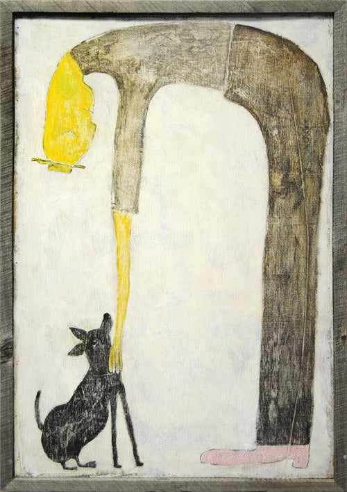 Another classic from Sugarboo Designs! An abstract man leans down to pet his little black dog, a respectable pair of “old friends.” People and pets love this print!