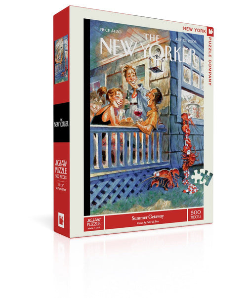 Summer Getaway - New Yorker Cover by Artist Peter de Seve, originally published on July 28th, 2008. The covers of The New Yorker have entertained and enlightened the magazine's readers for nearly a century. With unmatched visual sophistication and wit, they let no subject escape their scrutiny. A roster of extraordinary artists continues to create indelible images that are infinitely varied in style and tone, whether whimsical, provocative, serene, or lough-out-loud funny. From the iconic Eustace Tilley to spot-on images of contemporary life, The New Yorker's covers are always the talk of the town.