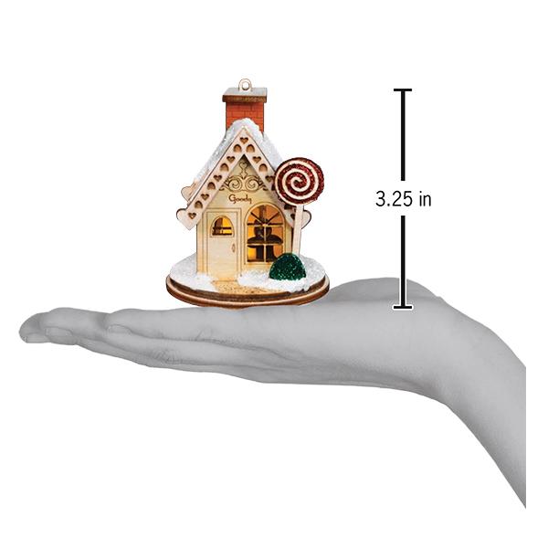 Goody Goody Gum Drop Shop has a small hole on its underside designed to borrow a standard bulb from your Christmas tree to light up the cottage. Upon lighting your cottage, you will immediately discover the first of many secrets, the beautifully crafted scene inside. How many kinds of candy can you find? How many gum drops can you find?