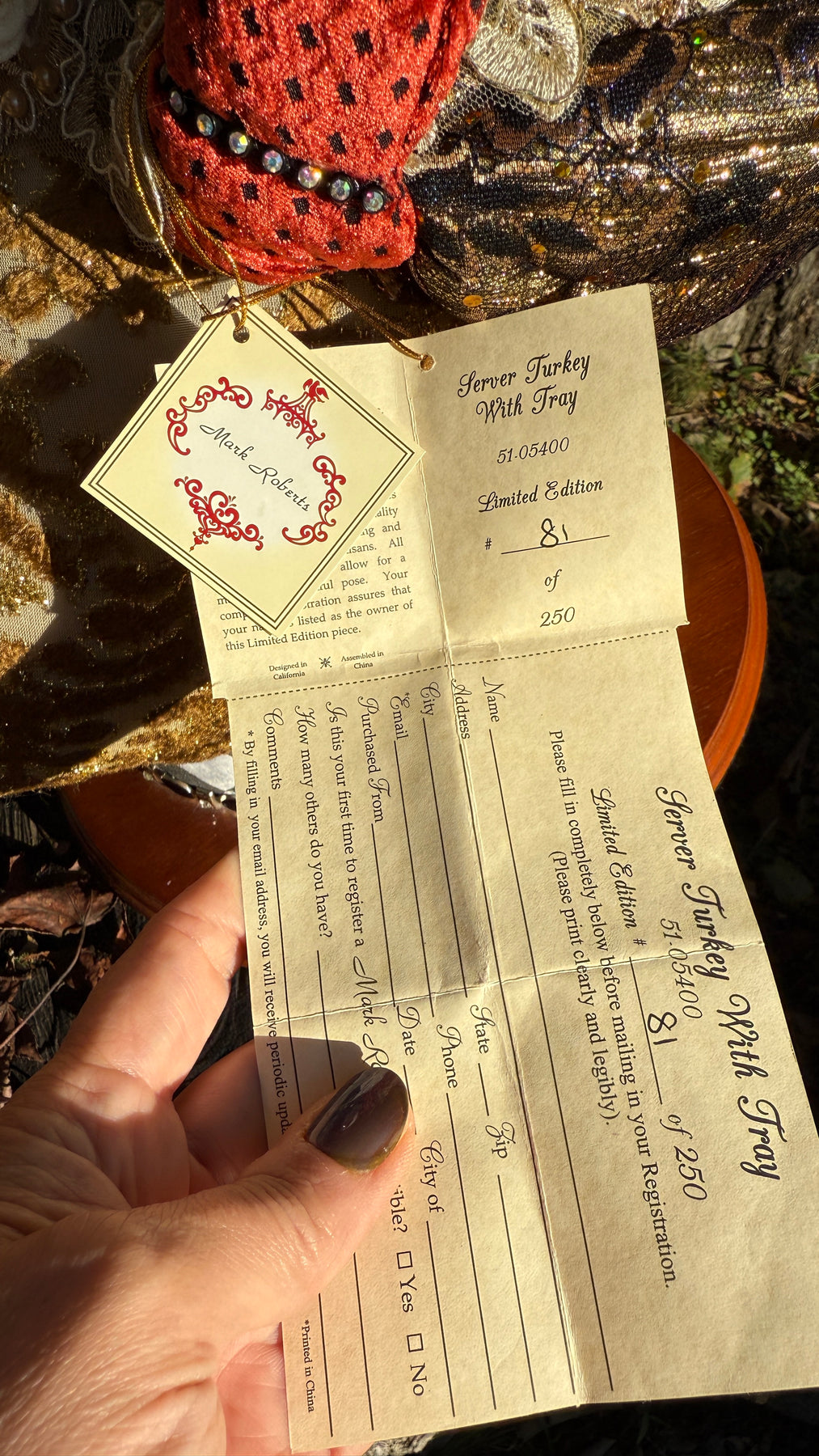 A museum-quality collectible from Mark Roberts' coveted Server Turkey collection, this is piece #81 of only 250 ever produced. Retired and exceptionally rare, this stunning figurine arrives in pristine condition with original tags intact. The intricate detailing and vibrant palette showcase masterful craftsmanship that photographs cannot fully capture. A true treasure for serious collectors. Please note: Due to the piece's substantial weight and delicate nature, shipping requires premium packaging and handling to guarantee safe arrival.