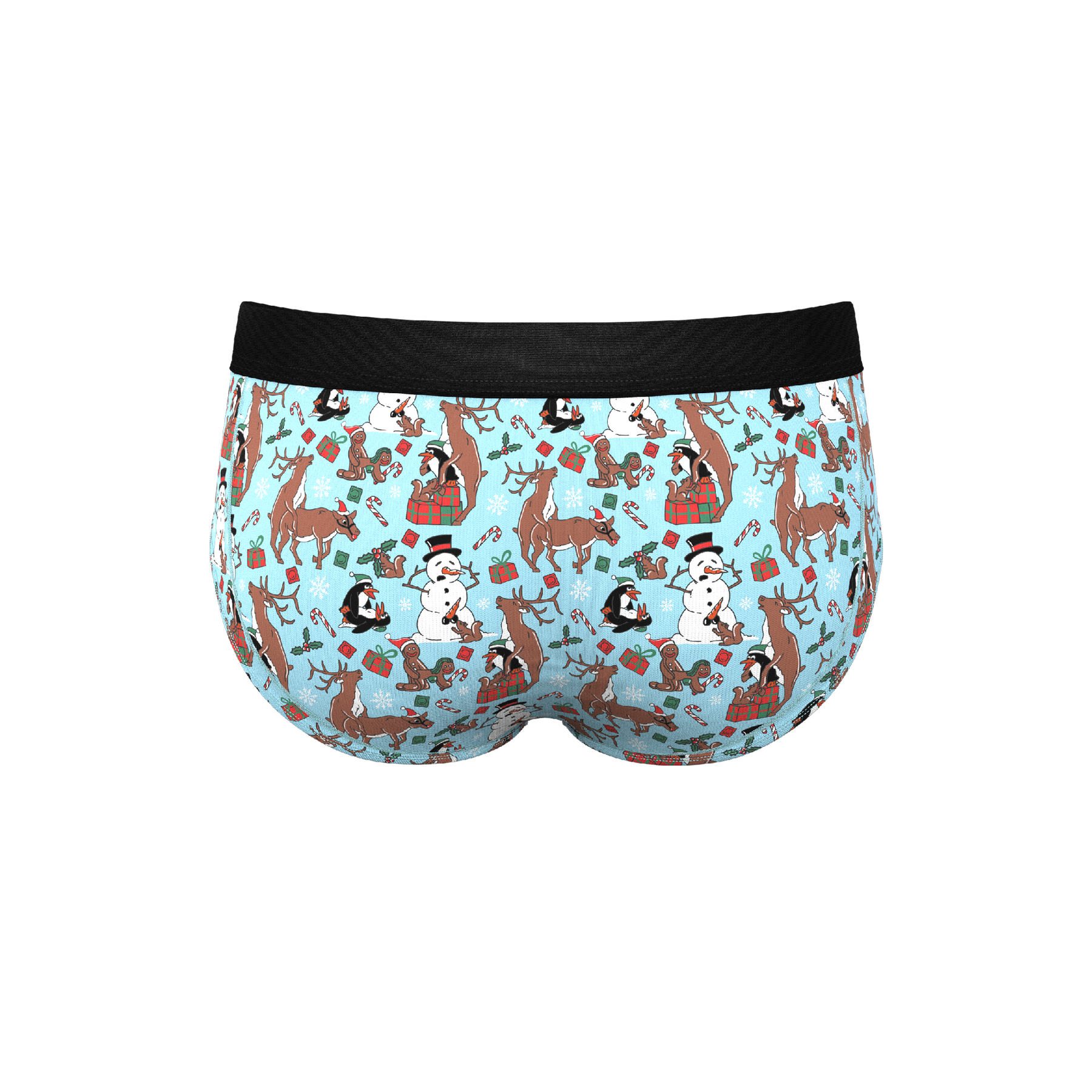 Ever wonder what happens at the North Pole while Santa’s out delivering presents? Let’s just say some boxes are definitely getting stuffed with toys. The yuletide orgy on this Ball Hammock® Pouch Briefs Underwear definitely puts the XXX in Xmas.