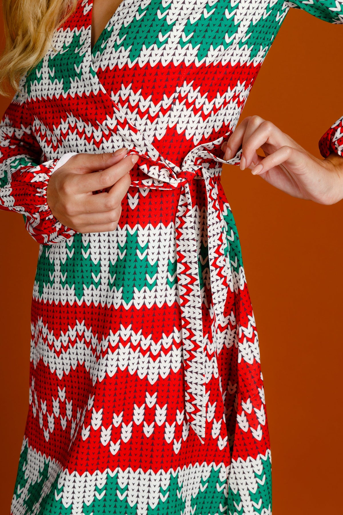 The Red Ryder | Knit Print Christmas Wrap Dress