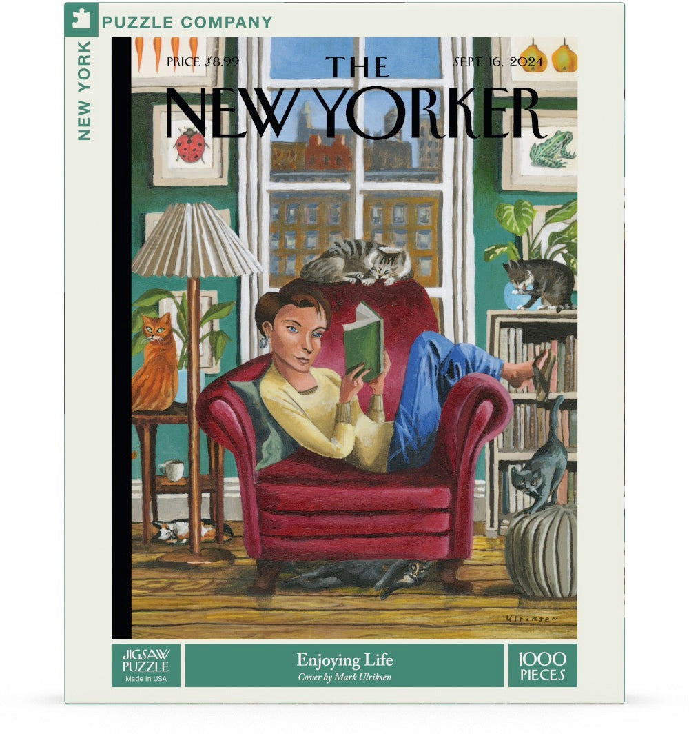 Whether you're a devoted puzzler or an admirer of The New Yorker’s iconic covers, the "Enjoying Life" puzzle offers a relaxing, screen-free activity that captures the simple joys of life in the city. It’s a wonderful addition to any puzzle collection and makes a thoughtful gift for art lovers, cat enthusiasts, and anyone who appreciates the charm of a peaceful moment in a bustling world.