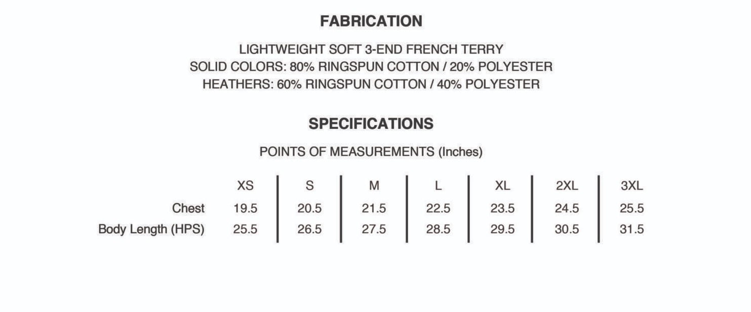 French Terry Raglan 80% Cotton & 20% Polyester: XS-XL $38 & 2X-3X $41.