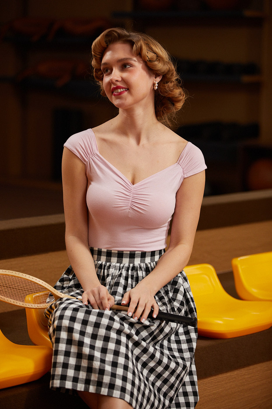 Looking for a pinup-approved top?  Well look no further: the Isabel top is a vintage staple with modern features!   Shown in our pretty blush, this super soft and stretchy top features a figure-flattering sweetheart neckline, shirring at the bust and on the sleeves, and is a pullover style with no zippers or buttons.  Pair with a swing skirt for the ultimate retro ensemble or your favorite jeans.  The options are endless!