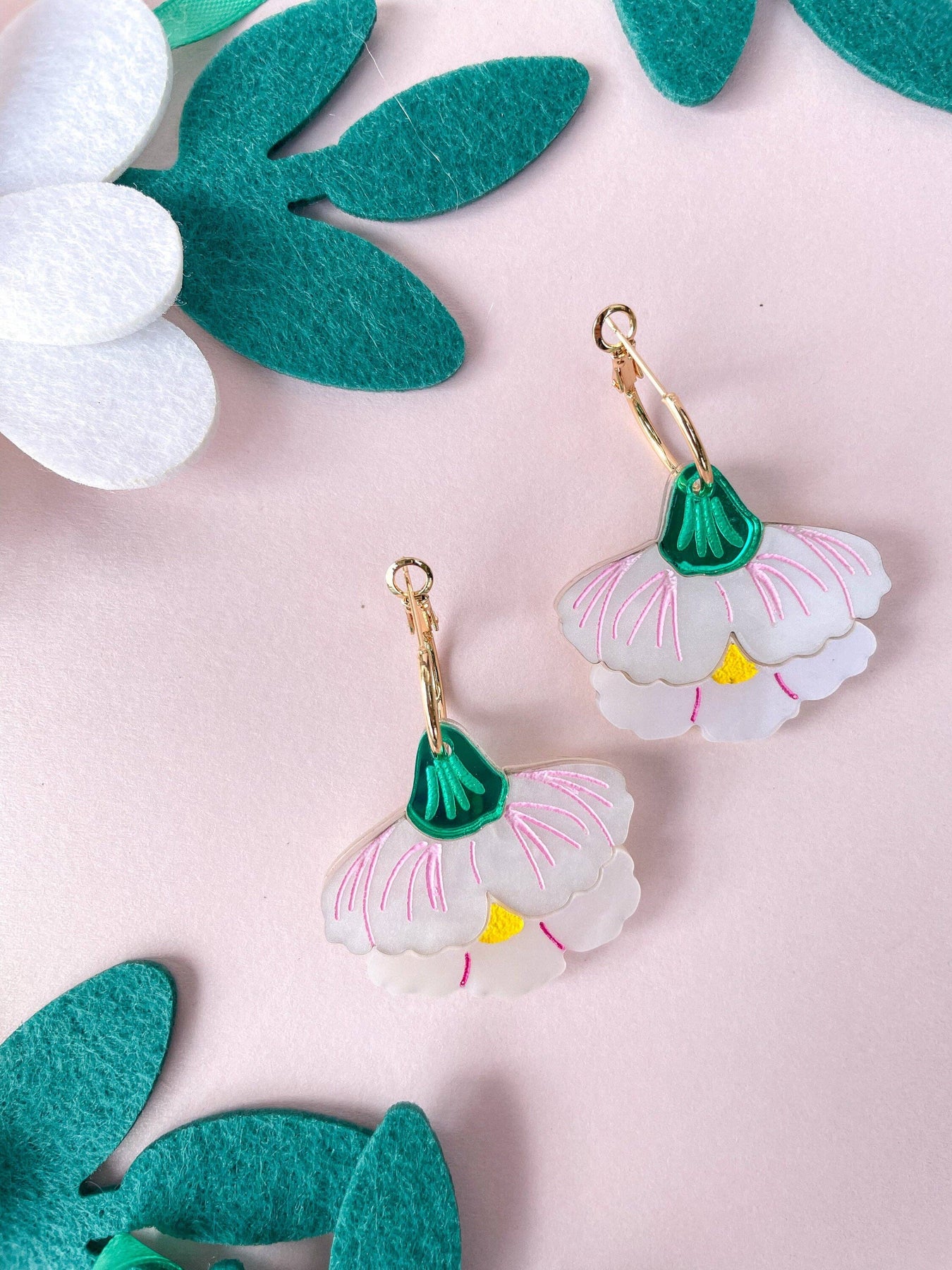 Welcome to Sunnie Creative's Flower Ball Each design of earrings is unique and cannot be exactly replicated. Extremely light and comfortable to wear. Slight variation may occur compared to the pictures as they are handmade items. All earrings are made of acrylic with hypoallergenic, nickel-free brass hoops.