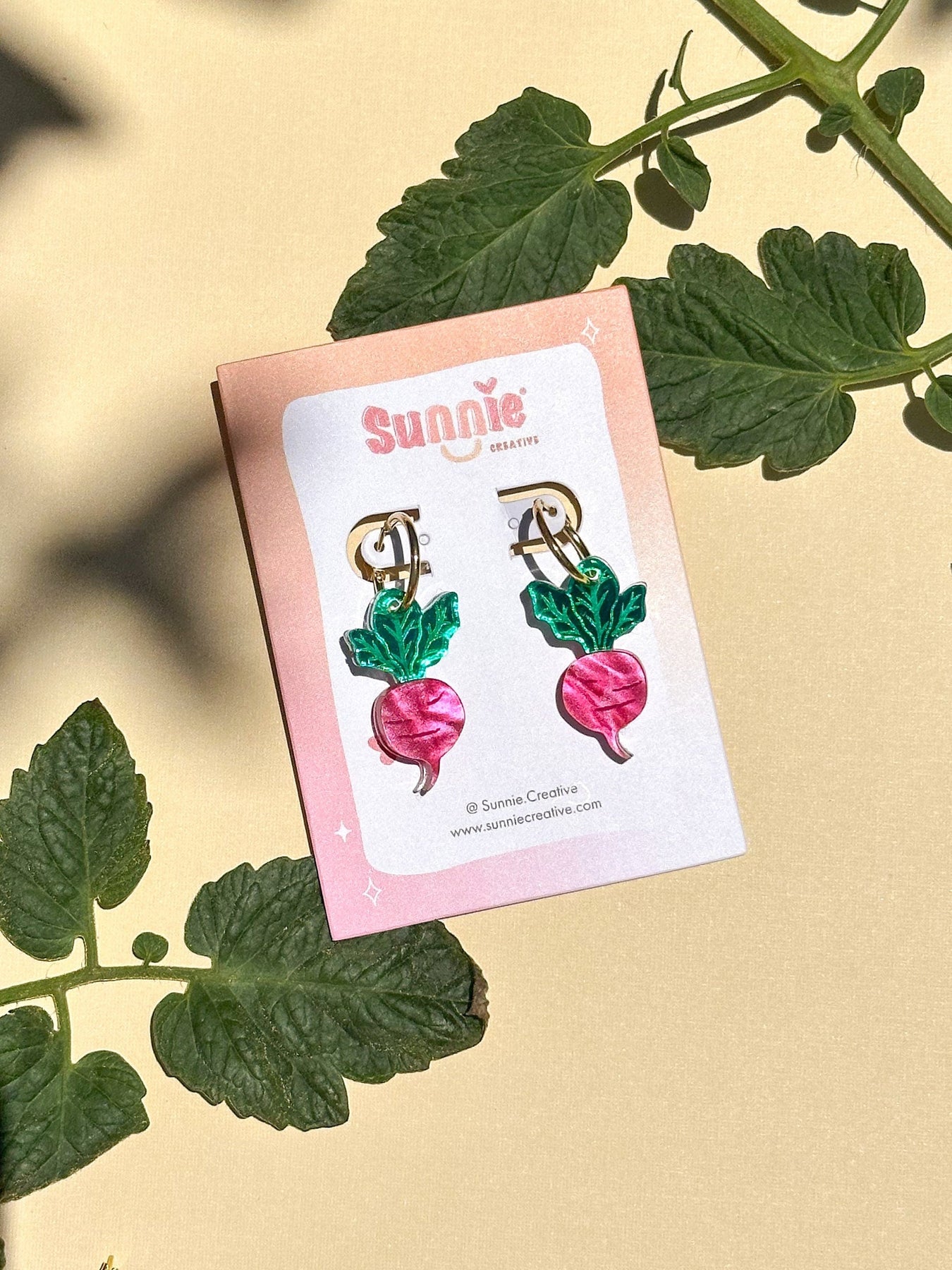 ๐ฑ Spruce Up Your Style with Radish Acrylic Earrings! Perfect for casual wear, garden parties, foodie events, and more. Add a playful touch to any outfit!