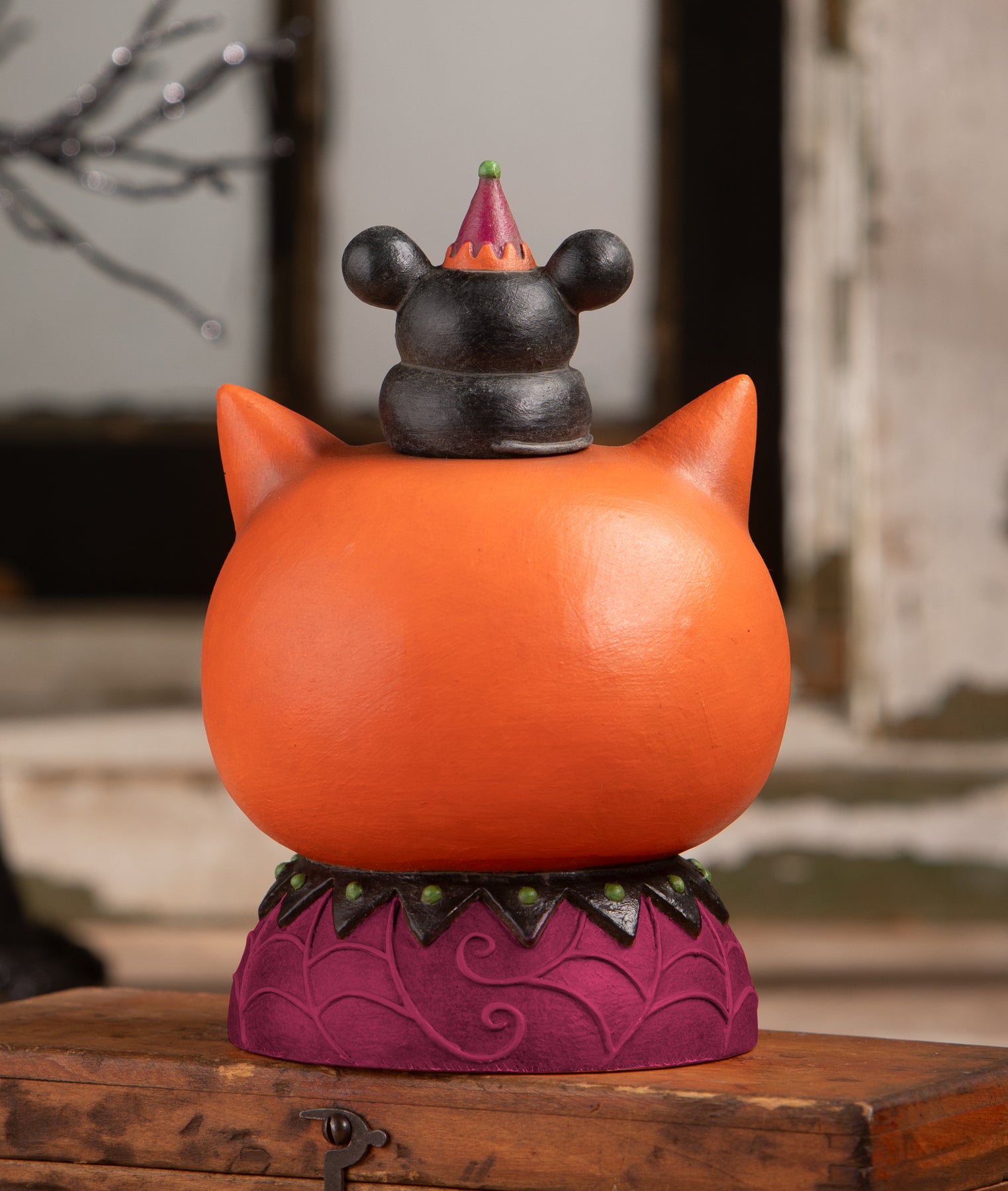 Designed by Johanna Parker for Bethany Lowe Designs, this collectible halloween accent is crafted from hand-painted resin and brings vintage-inspired charm to mantels, shelves, tabletops, entryways, and seasonal displays.
