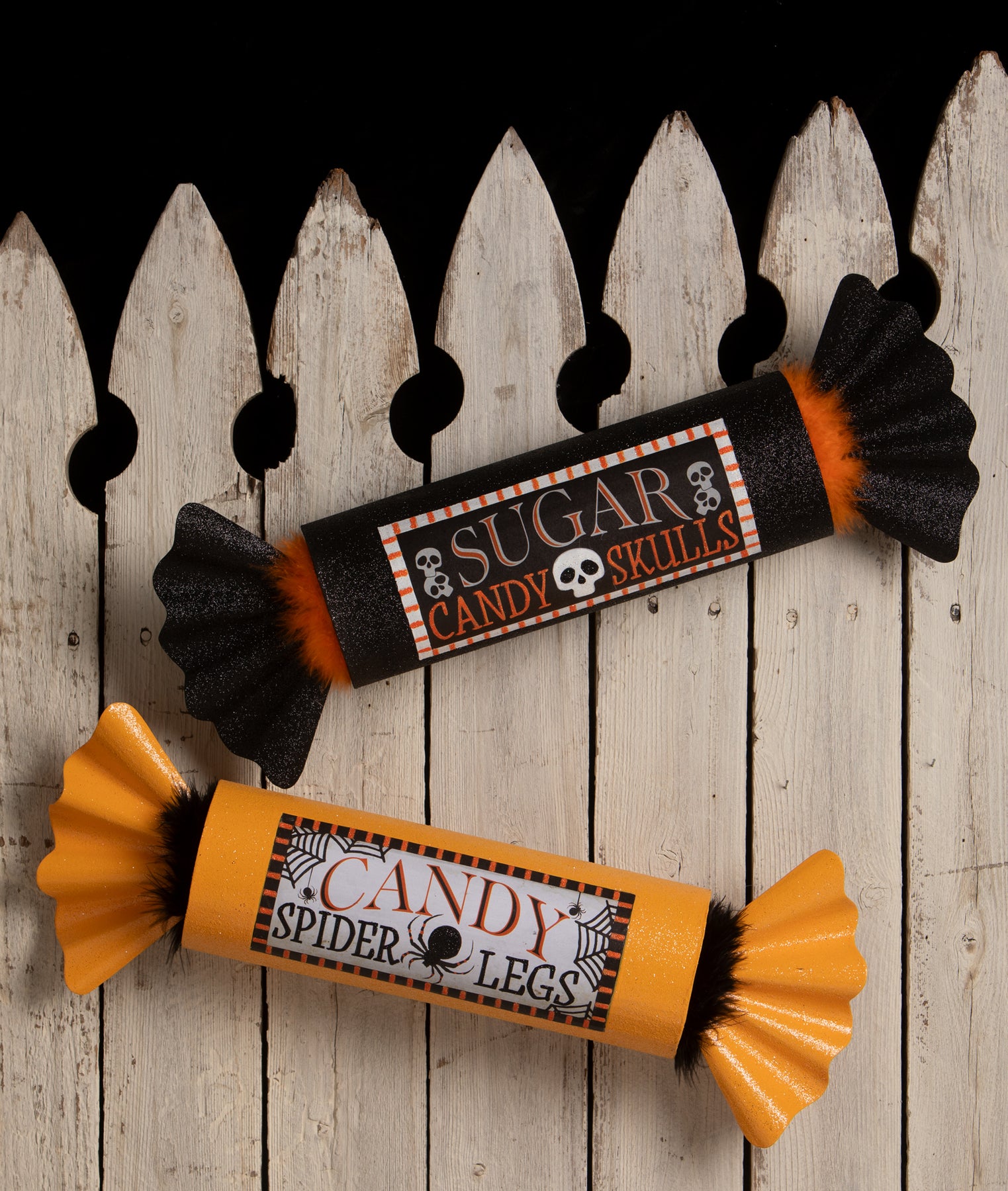 Designed by Bethany Lowe for Bethany Lowe Designs, this collectible halloween accent is crafted from tin, glitter, paper, and fabric and brings vintage-inspired charm to mantels, shelves, tabletops, entryways, and seasonal displays.