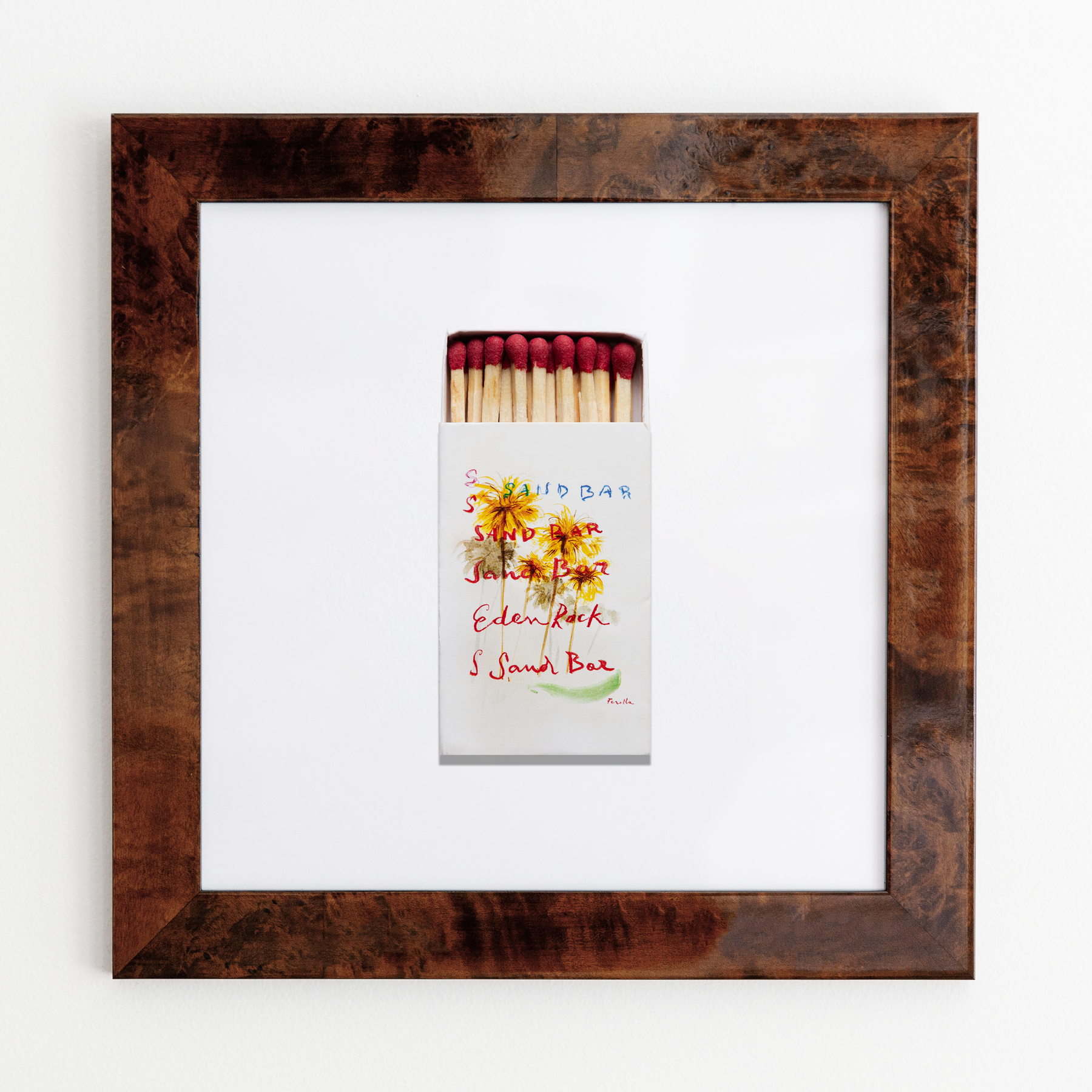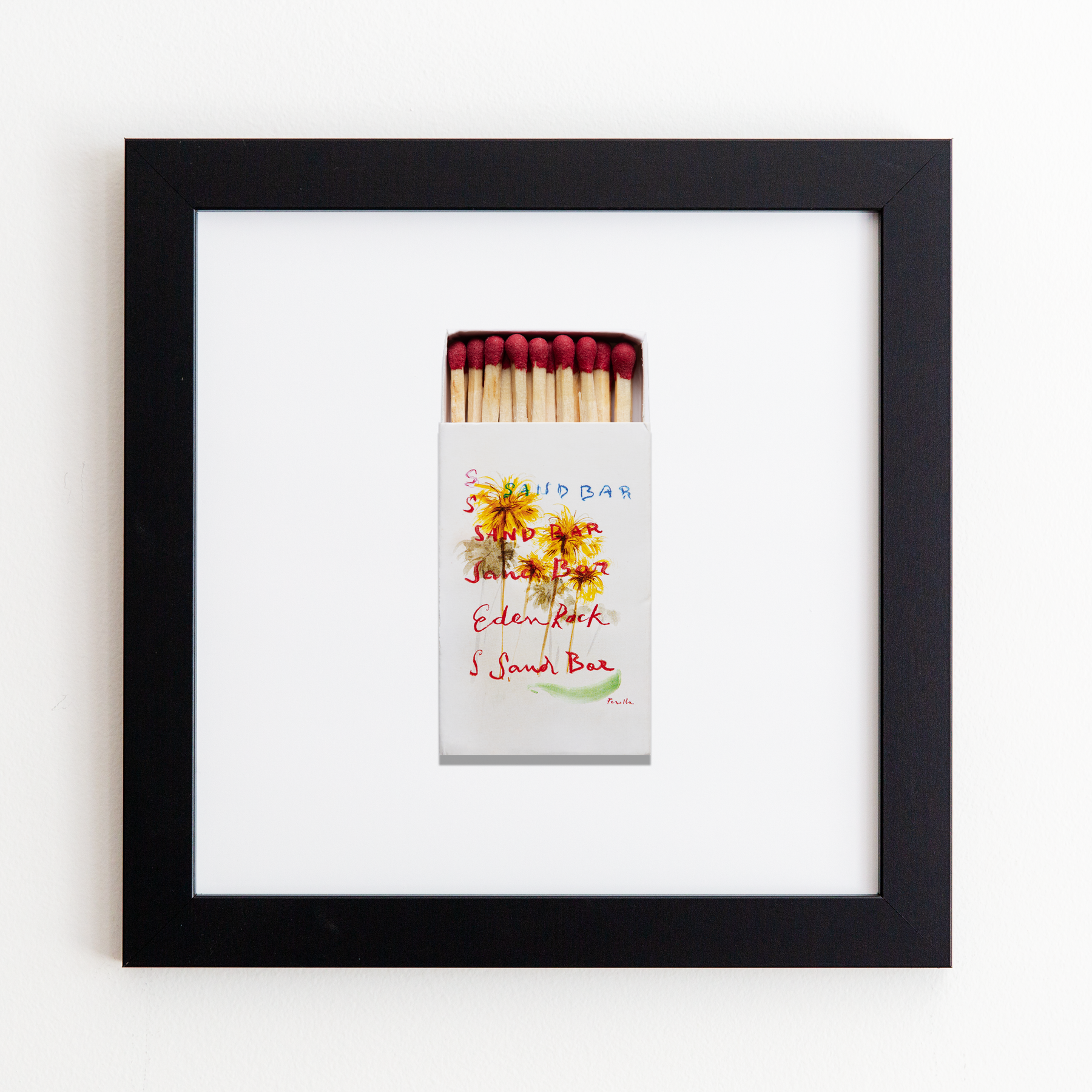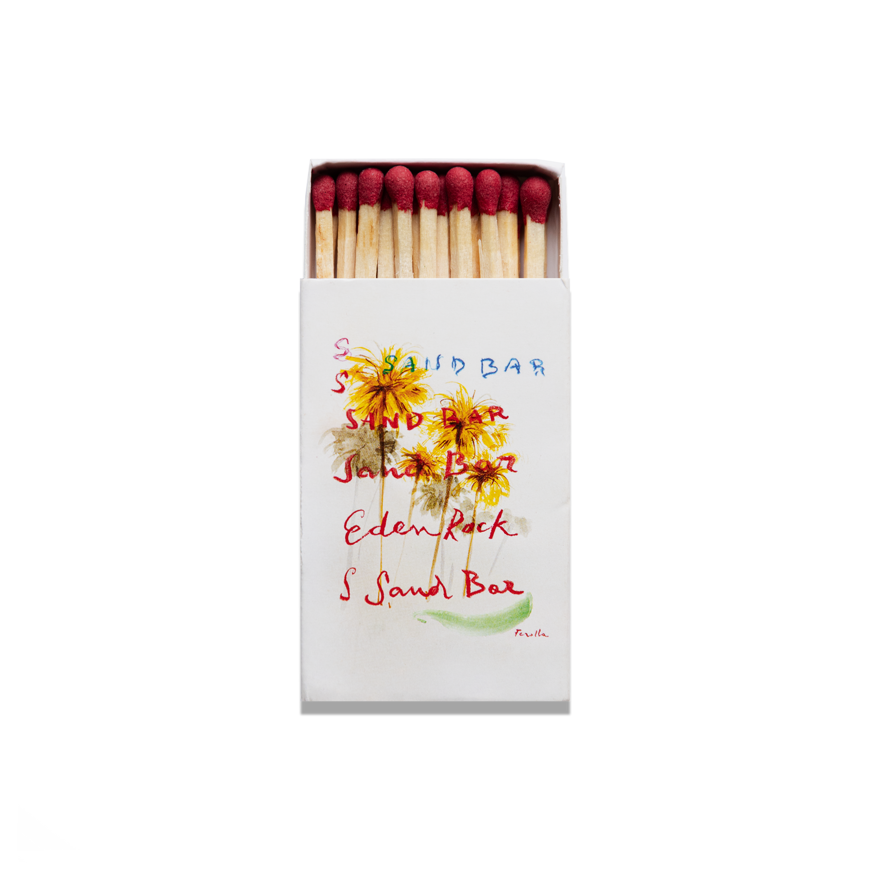 The Sand Bar St. Barth's (Front) print showcases an iconic matchbook design.