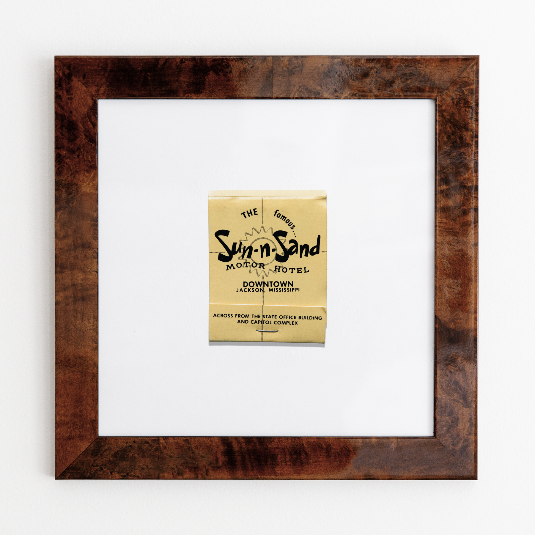 The Sun-n-Sand print showcases an iconic matchbook design.