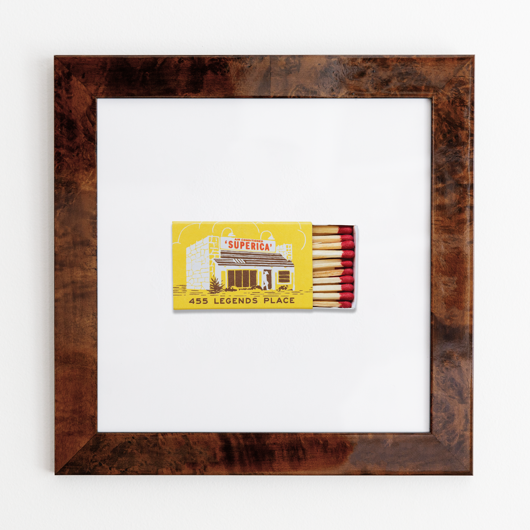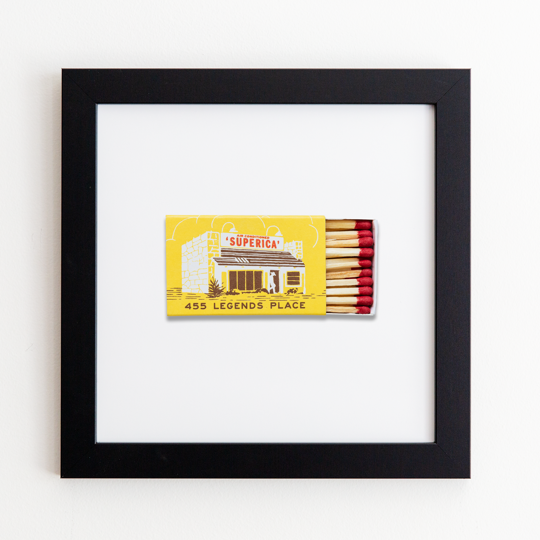The Superica (Yellow) print showcases an iconic matchbook design.