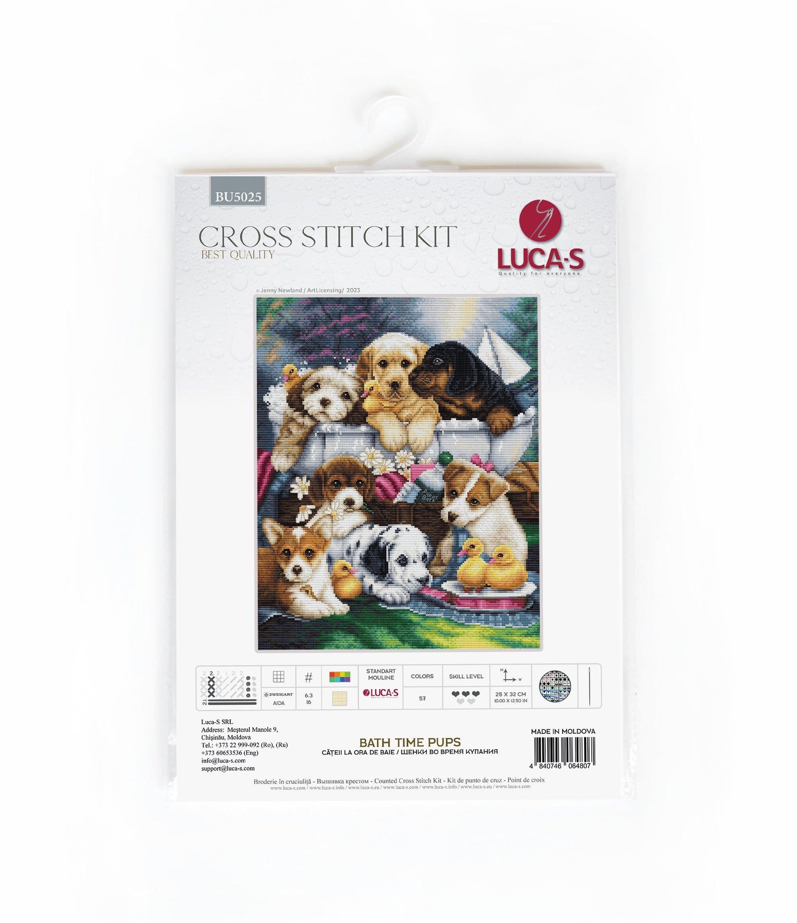 Bath Time Pups BU5025L Counted Cross-Stitch Kit