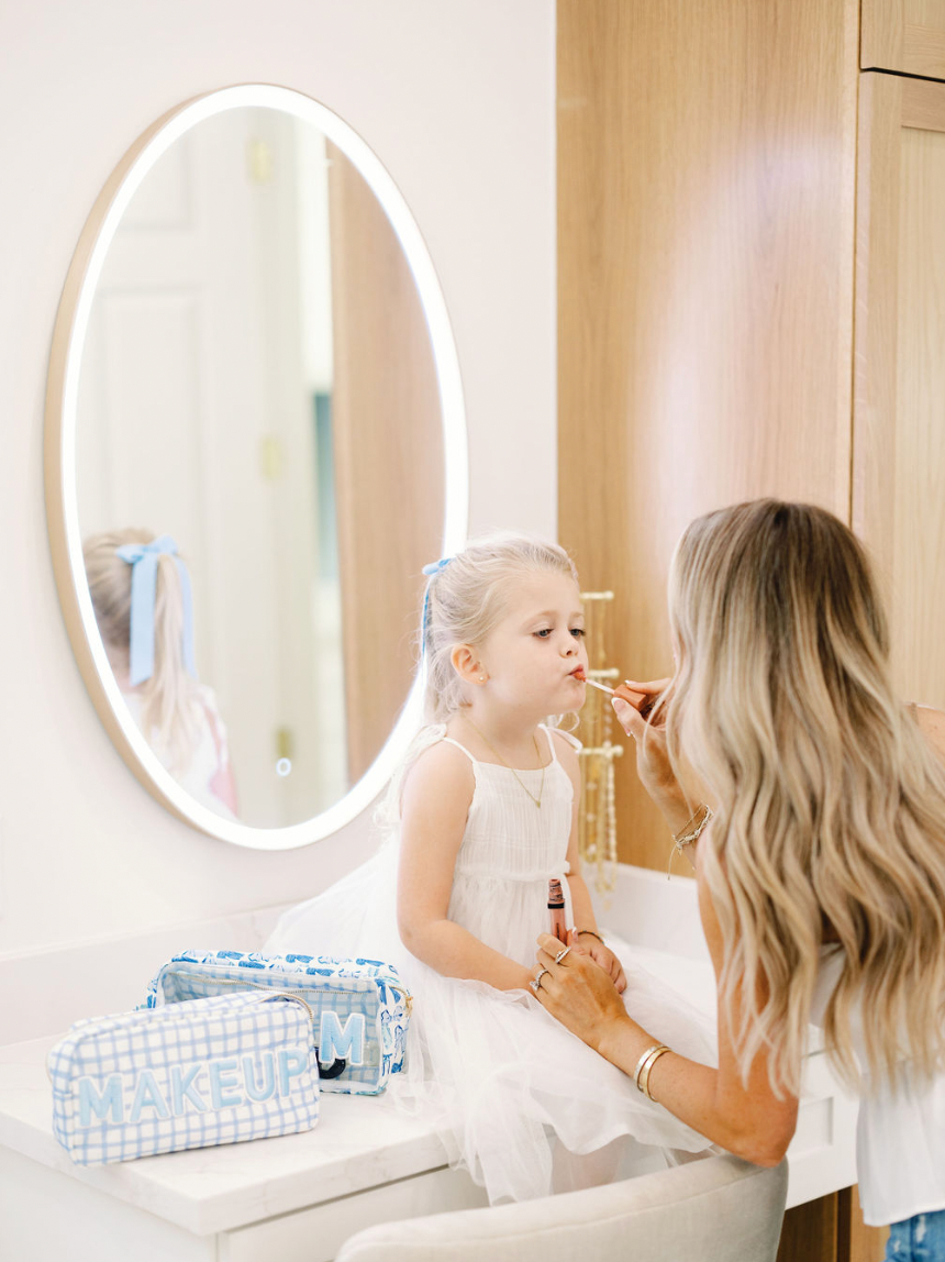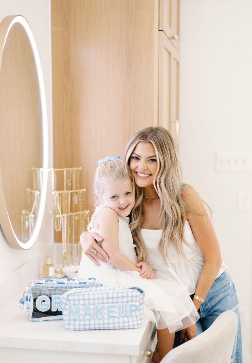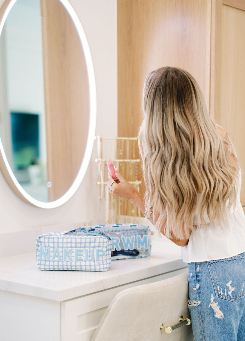 • Shop our first ever makeup blue checkered bag!