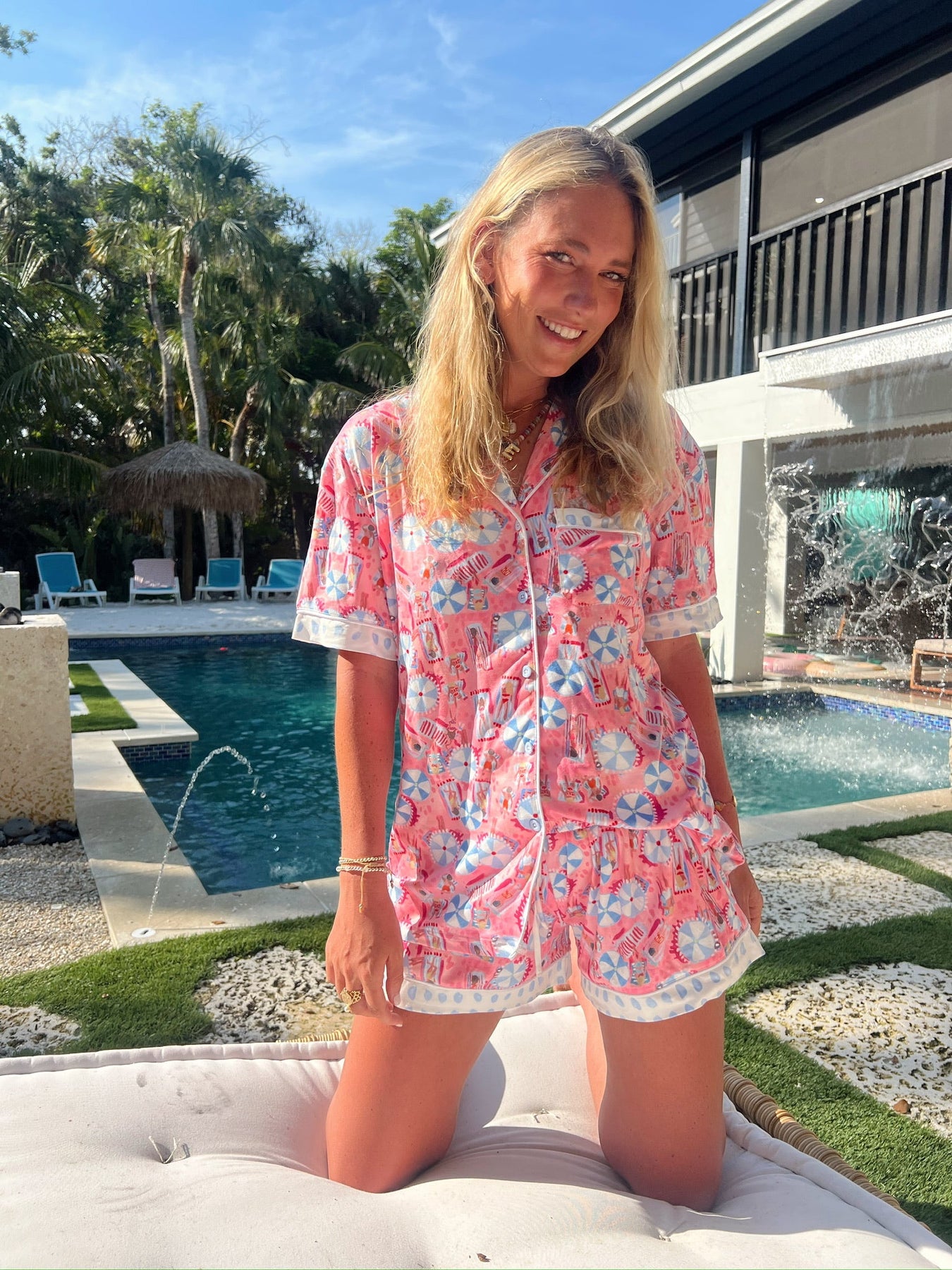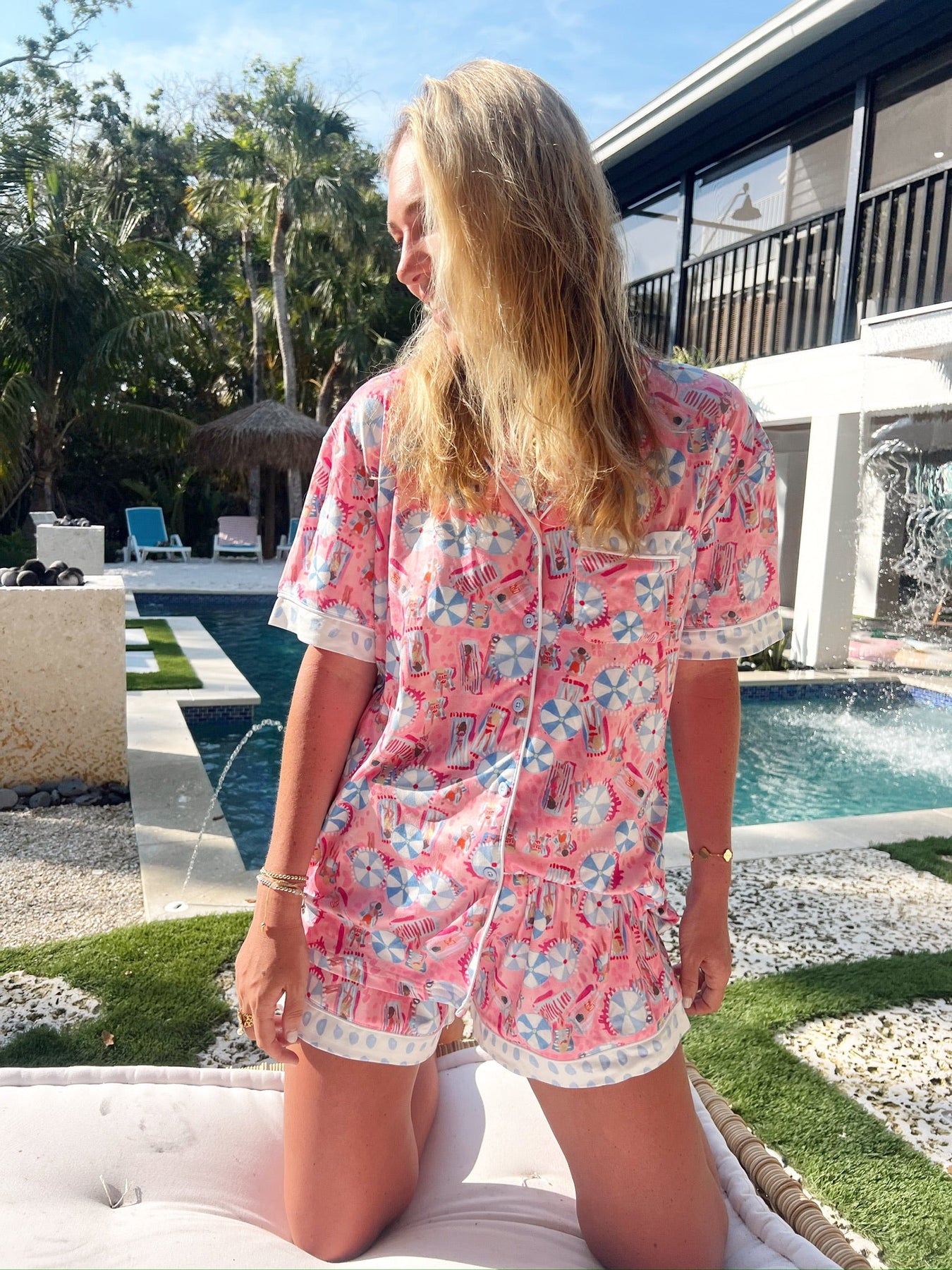 • Pink and periwinkle beach artwork - perfect for your spring + summer loungewear!