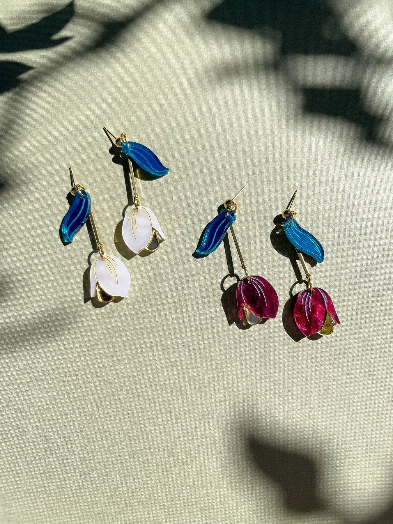 Each design of earrings is unique and cannot be exactly replicated. Extremely light and comfortable to wear. Slight variation may occur compared to the pictures as they are handmade items.