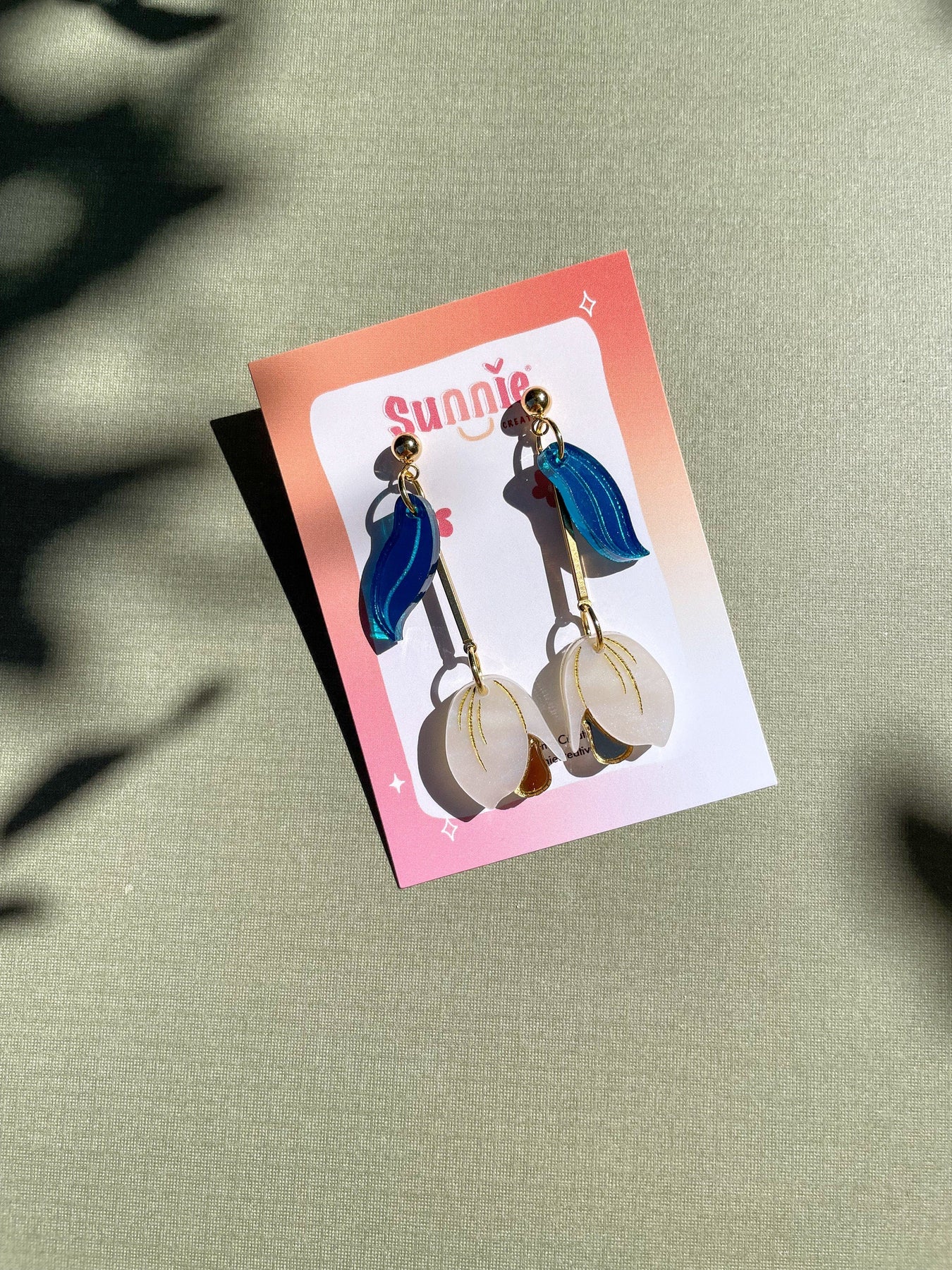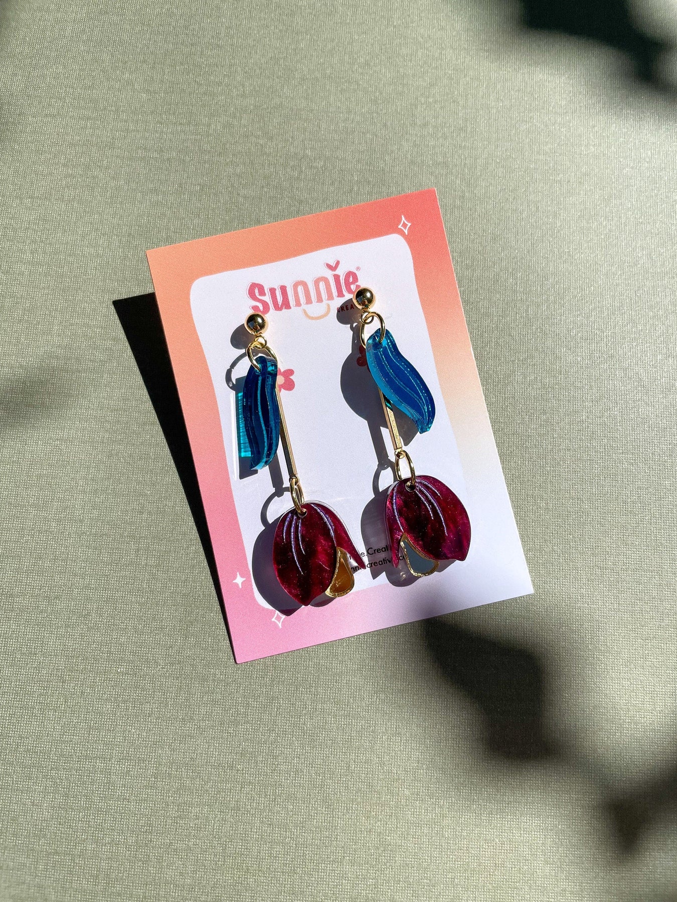 All earrings are made of acrylic with hypoallergenic, nickle-free hoops.
