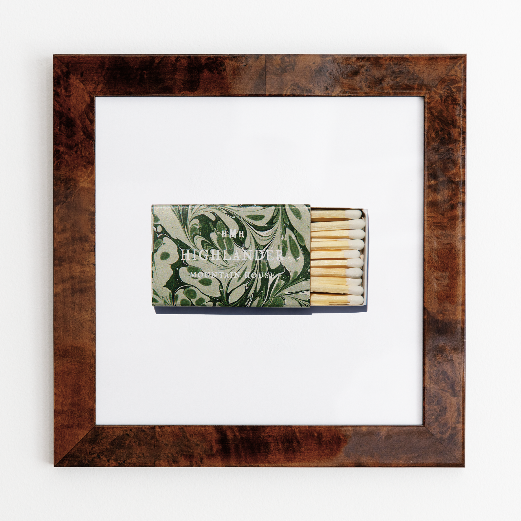 The Highlander Mountain House print showcases an iconic matchbook design.