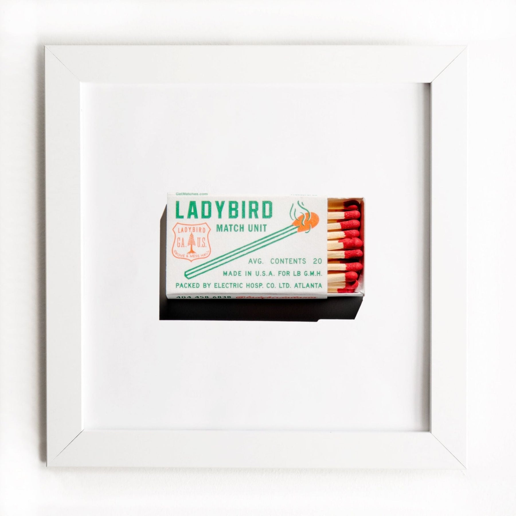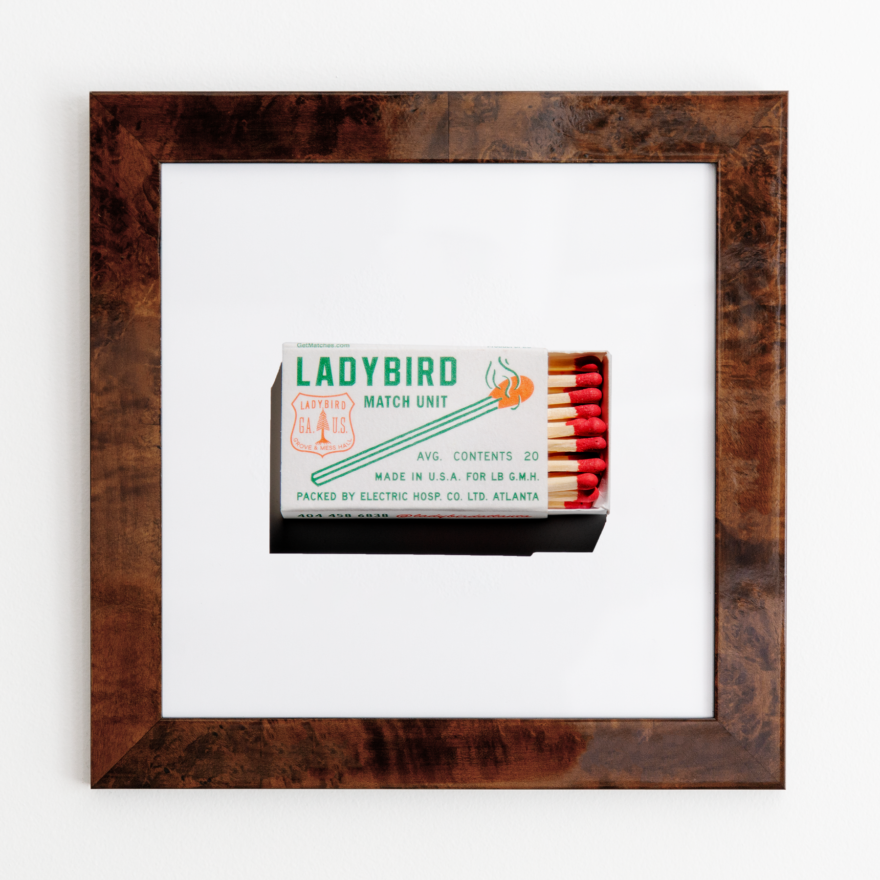 The LadyBird print showcases an iconic matchbook design.