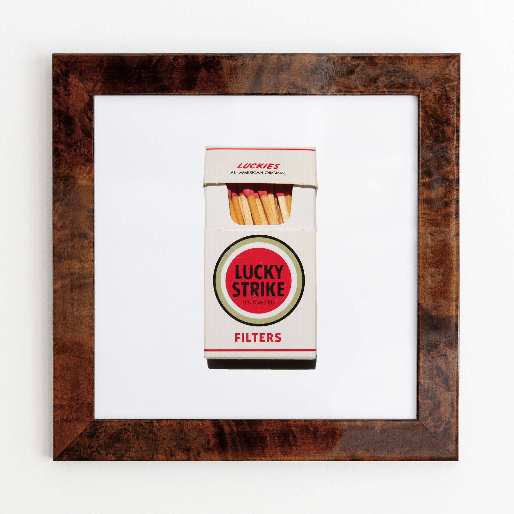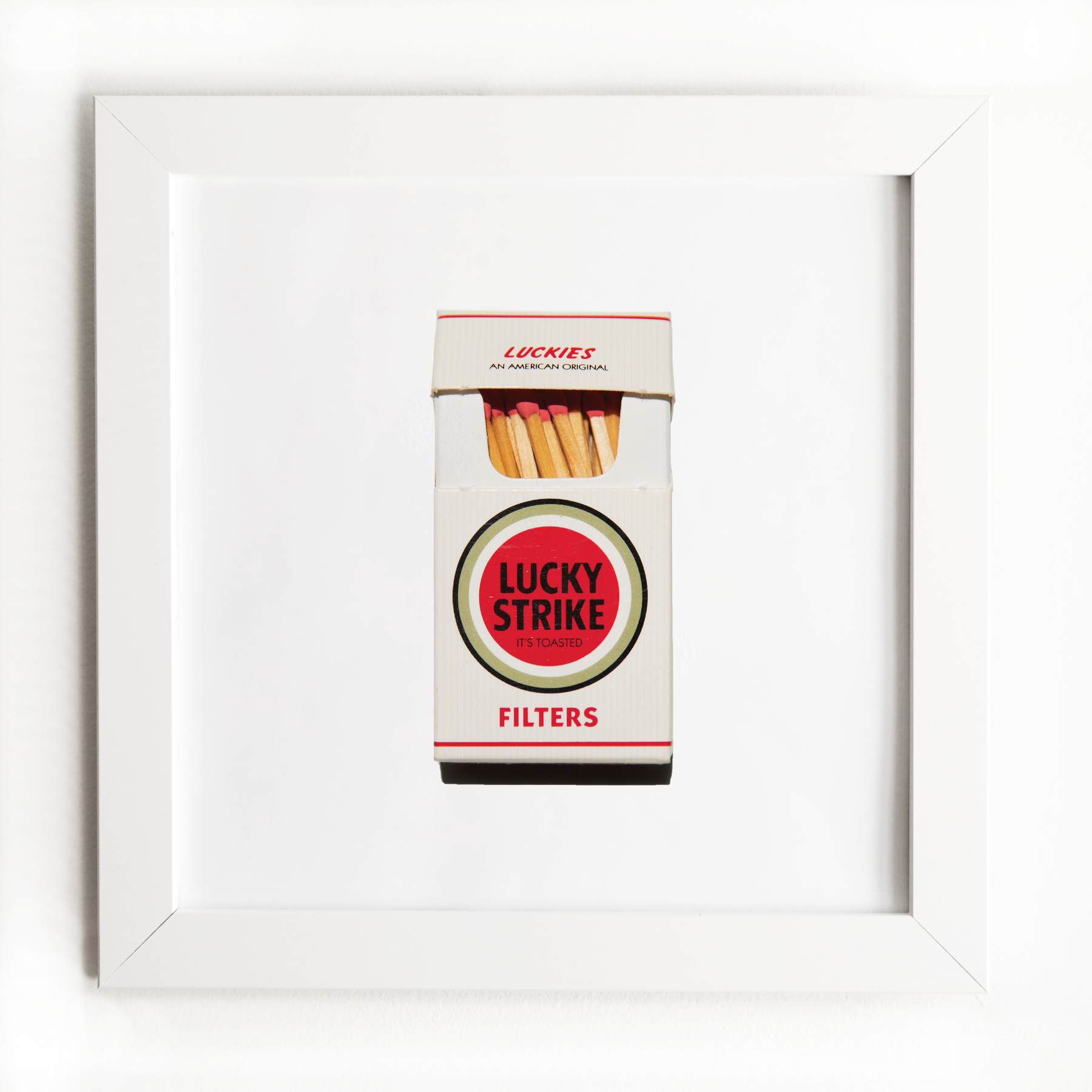 The Lucky Strike Cigarettes print showcases an iconic matchbook design.
