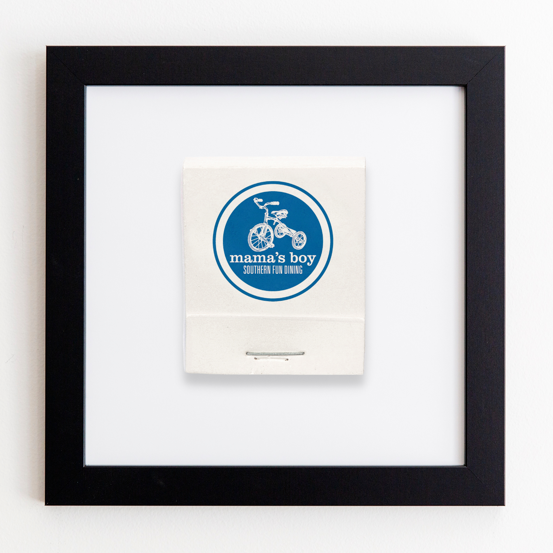 The Mama's Boy print showcases an iconic matchbook design.