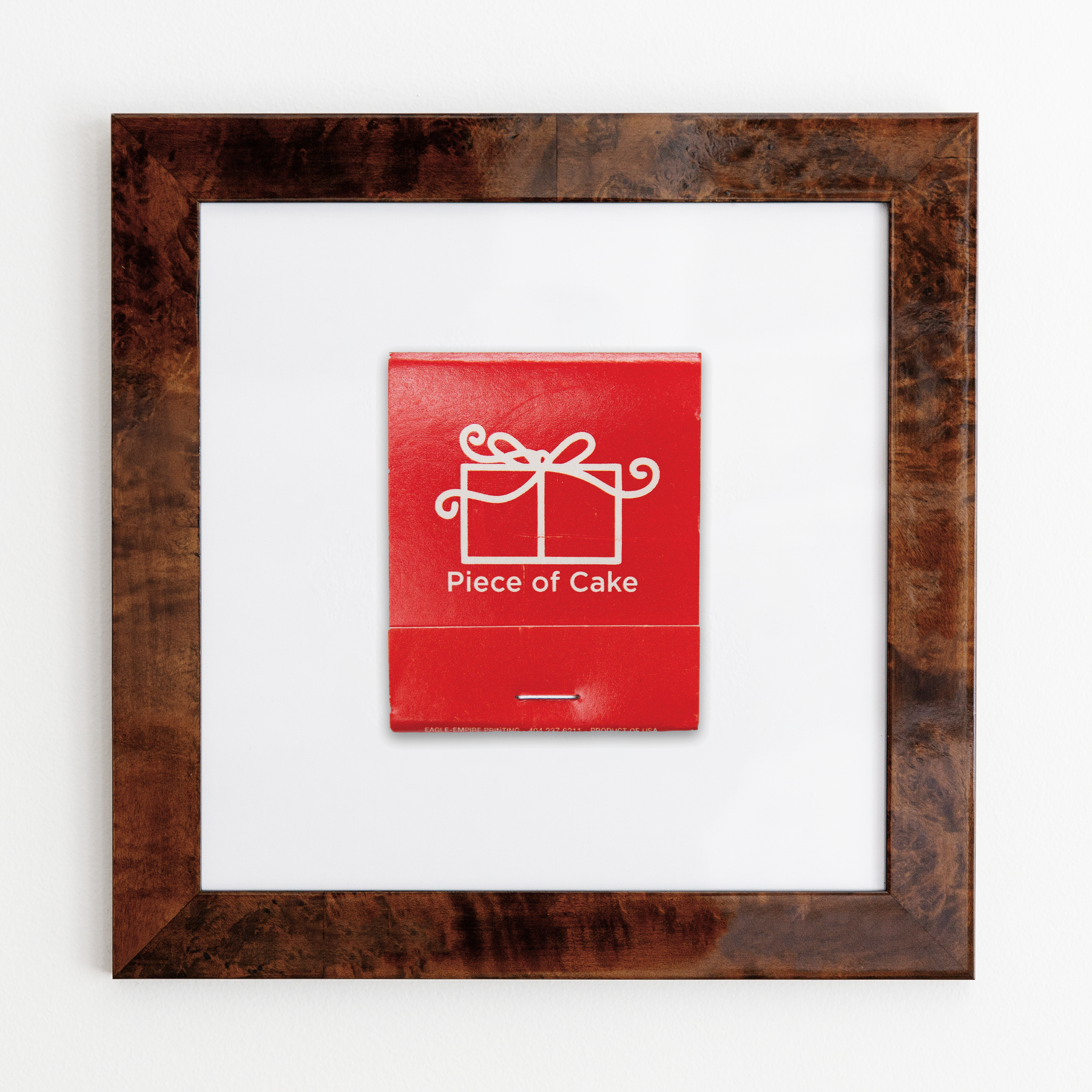 The Piece of Cake print showcases an iconic matchbook design.