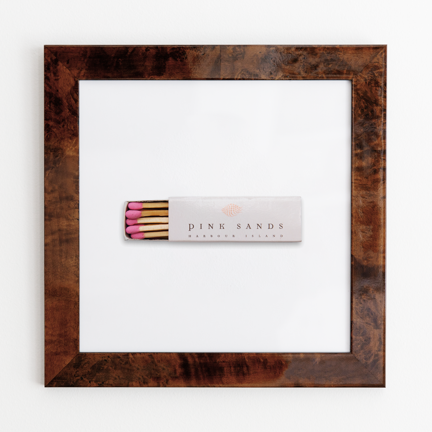 The Pink Sands Harbour Island print showcases an iconic matchbook design.