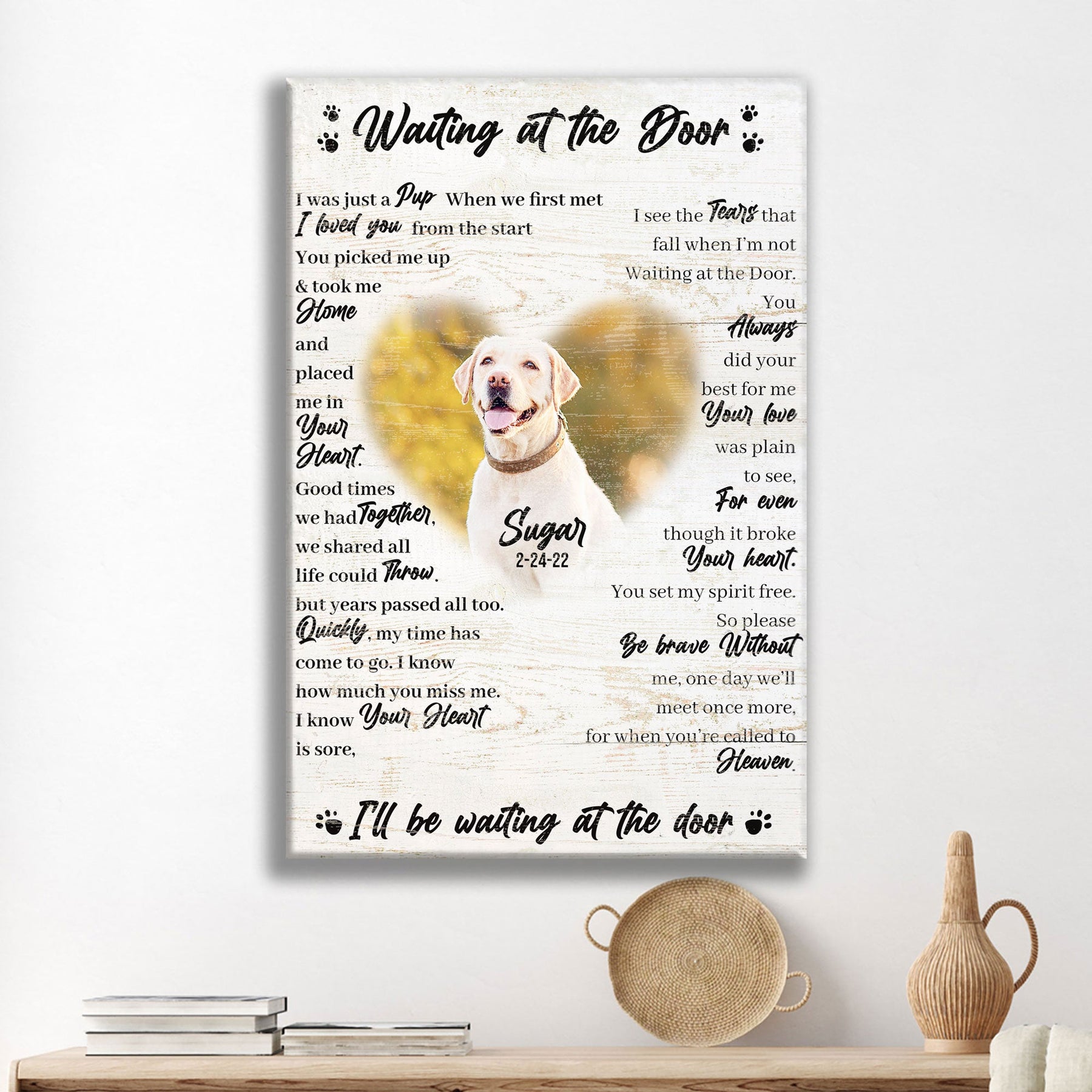 Elevate the warmth of your home with this Custom Pet Waiting at the Door canvas wall art featuring your adorable pet. This Custom Pet Waiting at the Door wall art is like your pet's message to you, making it an excellent choice for the receiving area or any other room in the home.