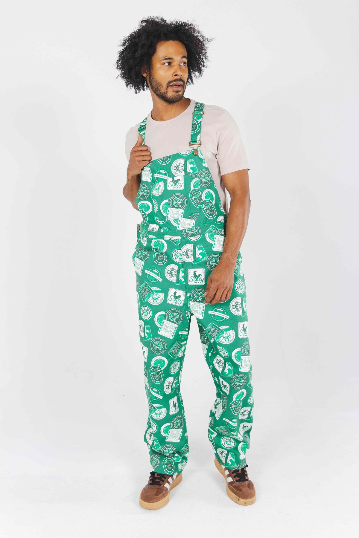 Raise a glass and celebrate in style with these vibrant green Irish Pub coaster overalls. Perfect for St. Patrick's Day festivities or year-round novelty wear, these unisex overalls feature bold Irish-themed graphics that'll make you the life of the party. Comfortable, eye-catching, and unapologetically fun—ideal for bar crawls, themed events, or anyone who loves a good laugh. Get lucky in green. Everyone's got a little bit of Irish in em.