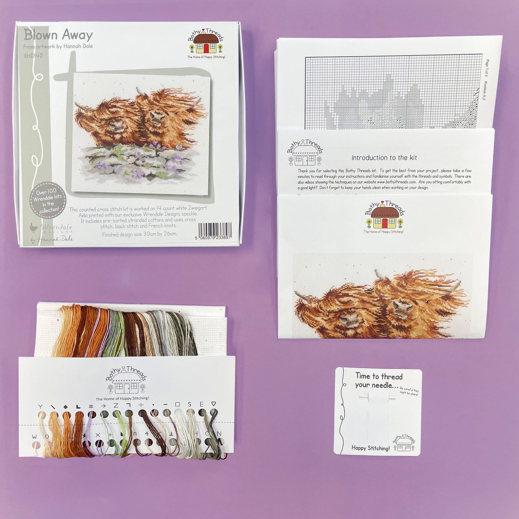 This counted cross stitch kit is worked on 14 count white Zweigart Aida printed with our exclusive Wrendale Designs speckle background.