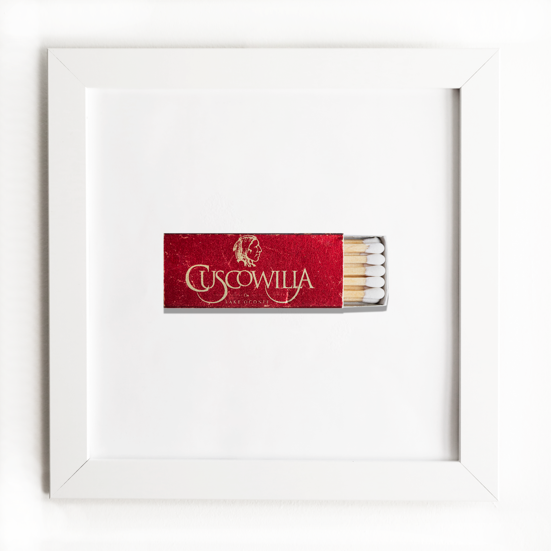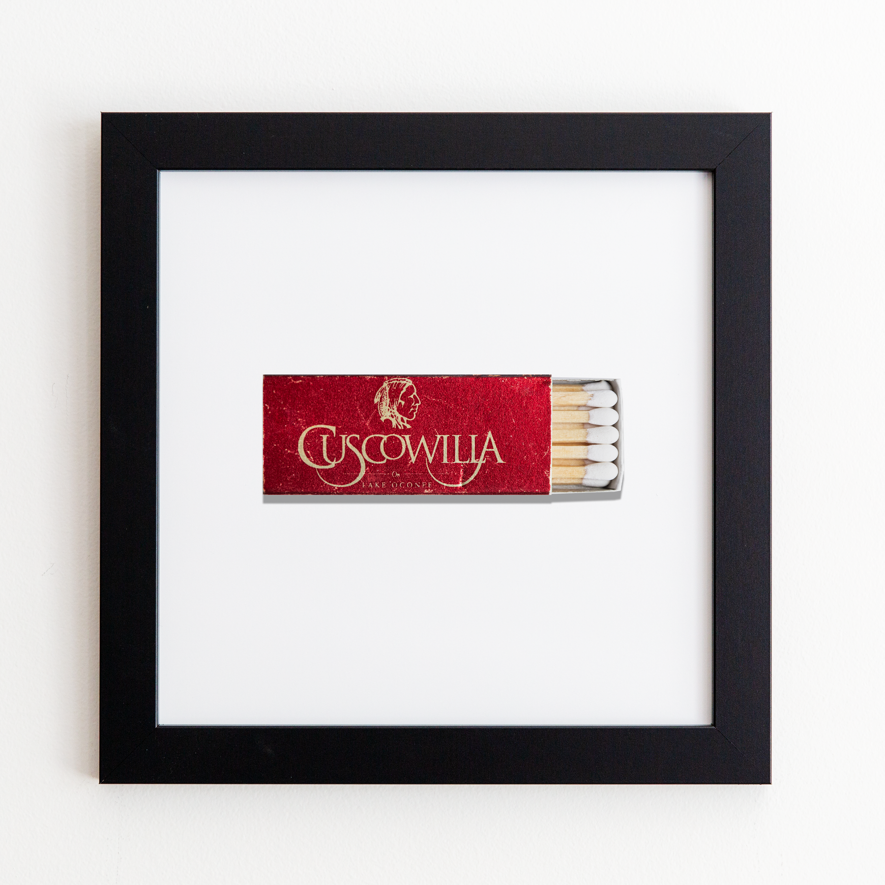 The Cuscowilla Lake Oconee (Front) print showcases an iconic matchbook design.