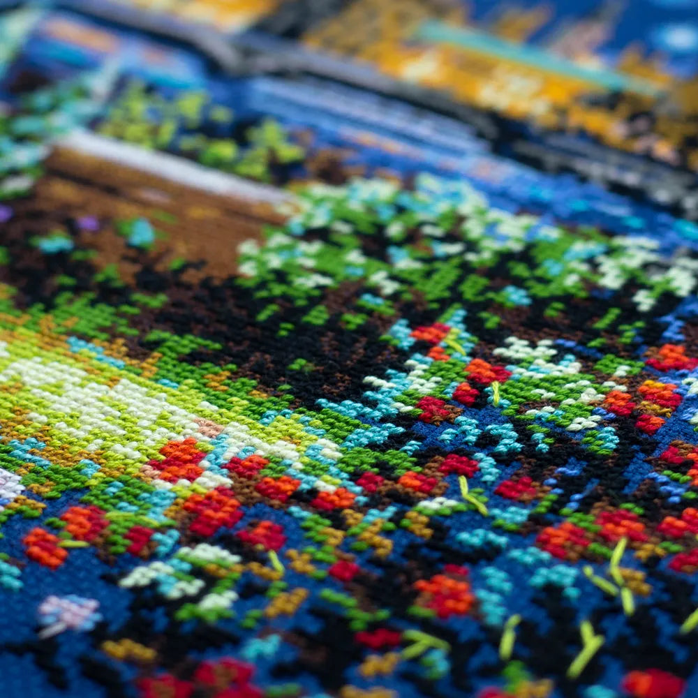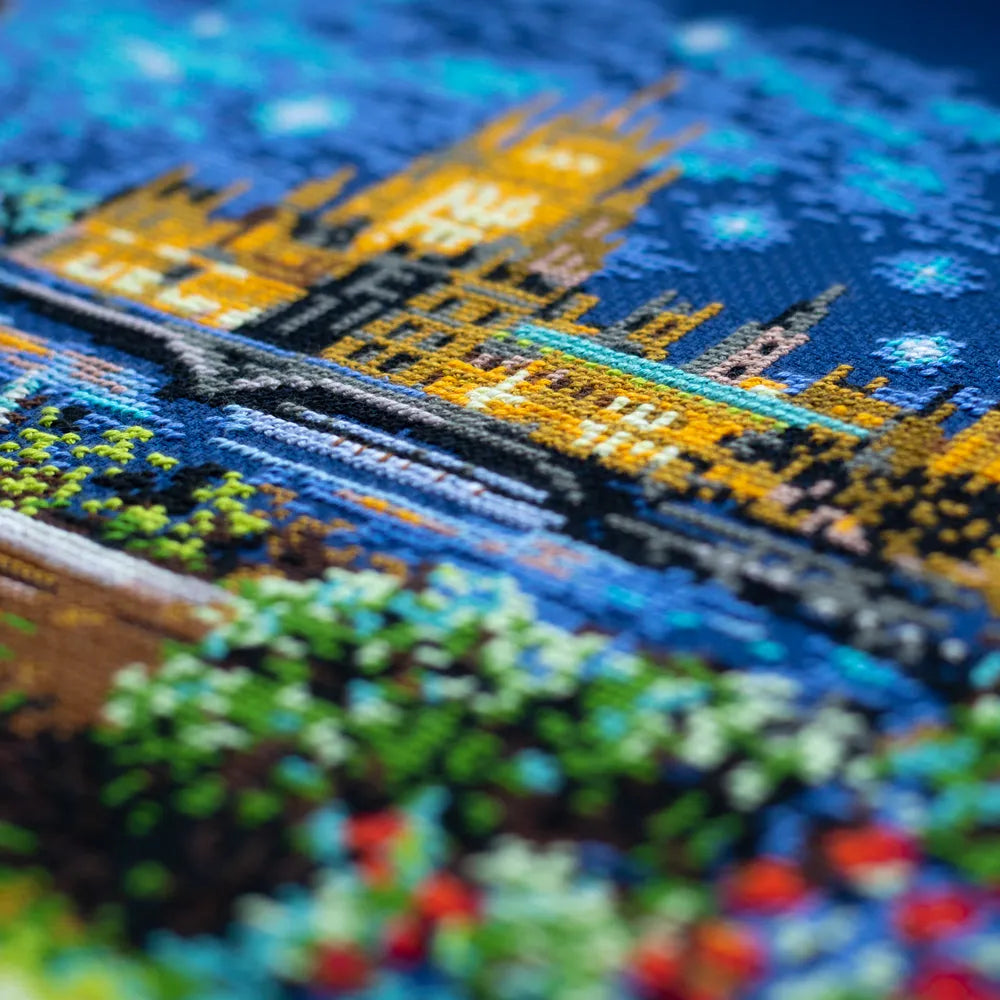 Kit contains: Fabric Zweigart Aida 14 (col.589, dark blue), Threads: mouline DMC, Number of Colors:31. Embroidery instructions in English, German, French and Spanish; color symbol scheme. Dimensions: 40*30cm / 15,75*11,81inches