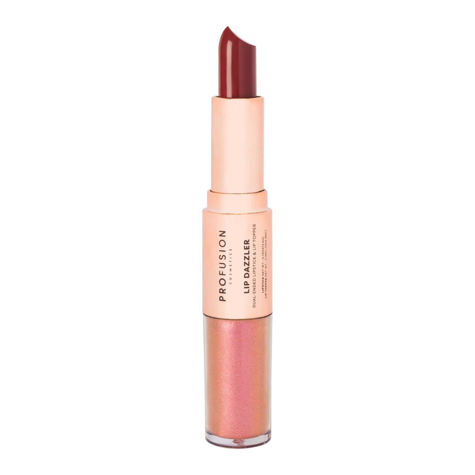 Give your pout the most dazzling look with our new statement-making, dual-ended Lip Dazzler. The long-wearing lipstick has a matte texture that is comfortable on the lips while the lip topper will instantly make them dazzle with reflective shimmer. Helpful how-to guide included.