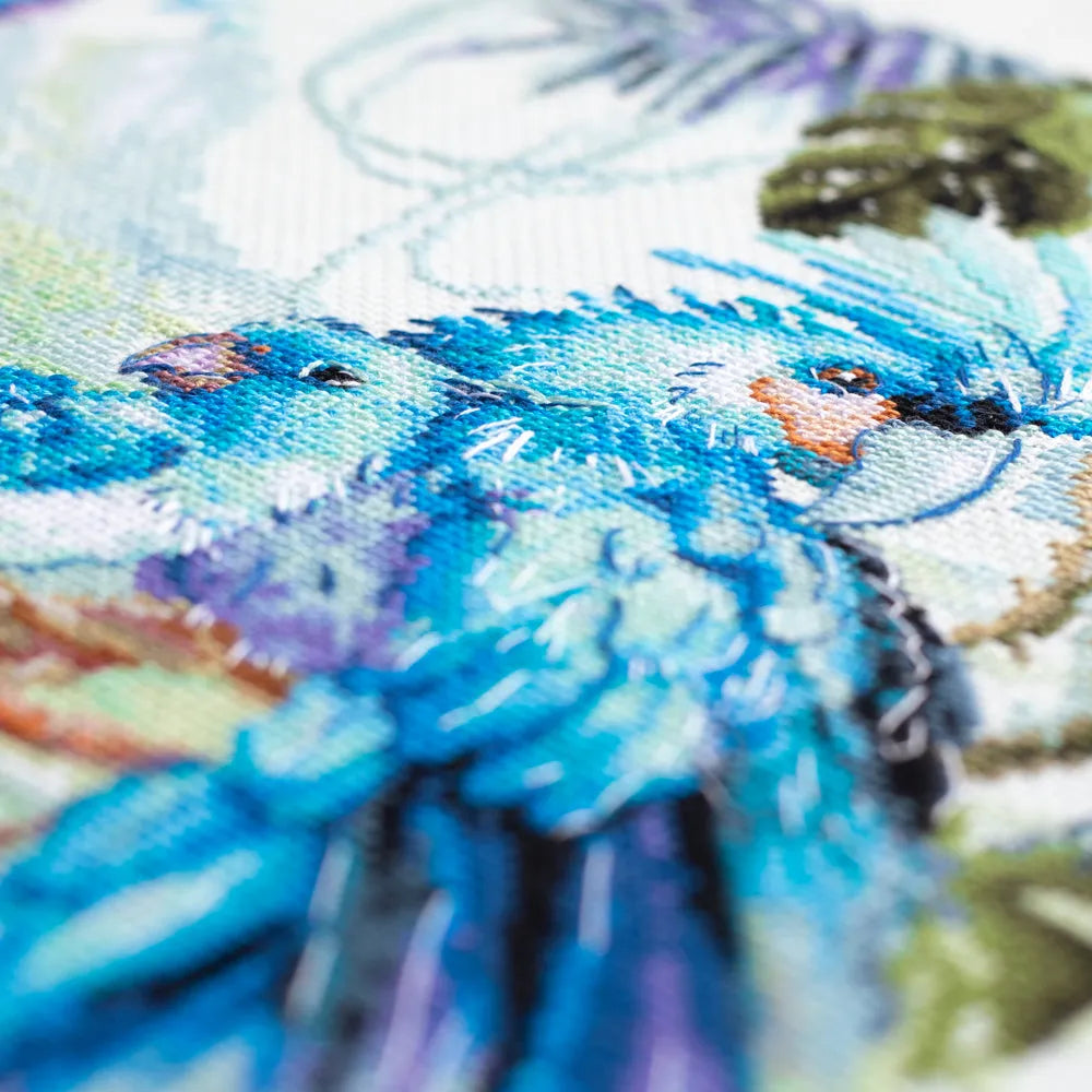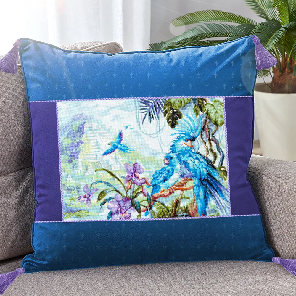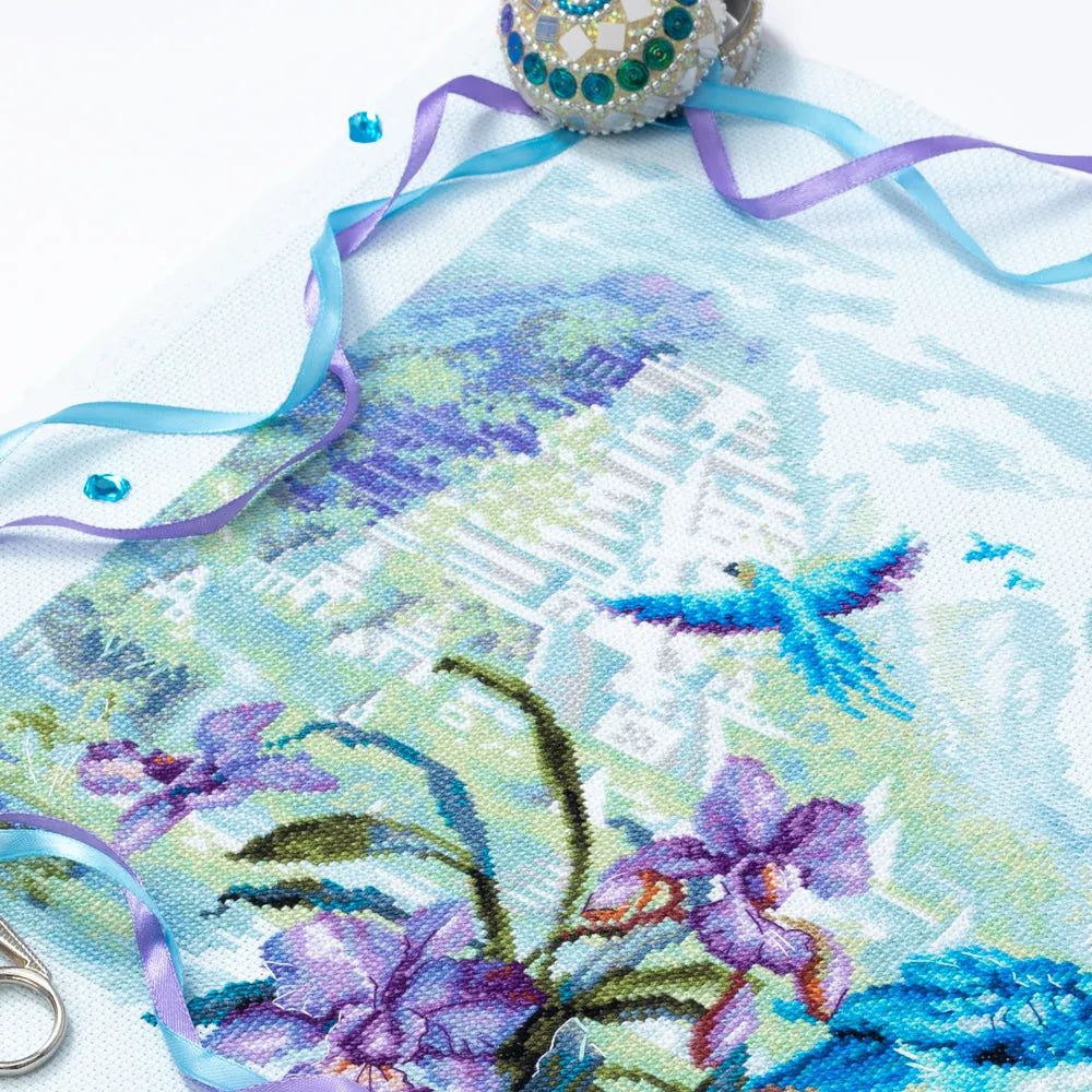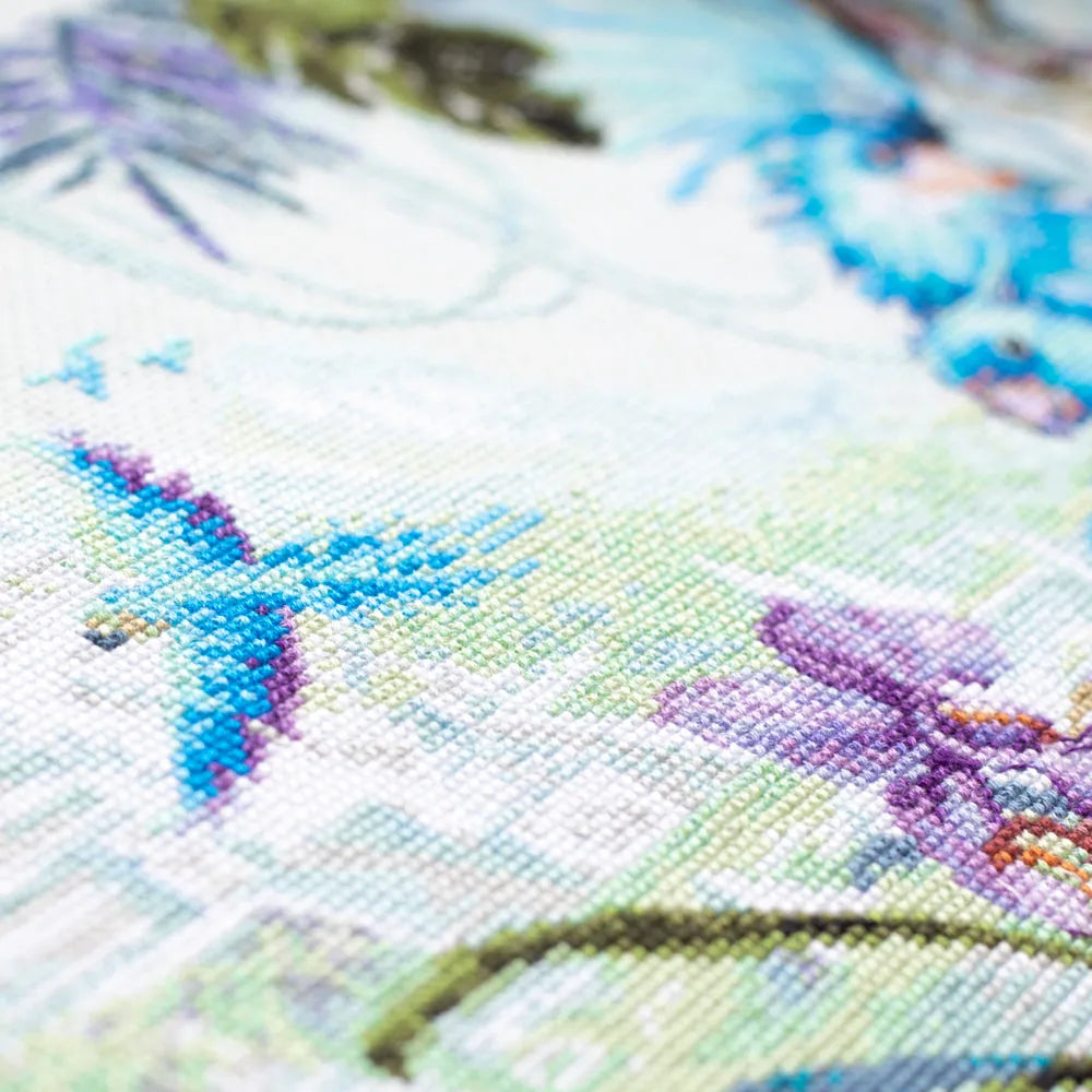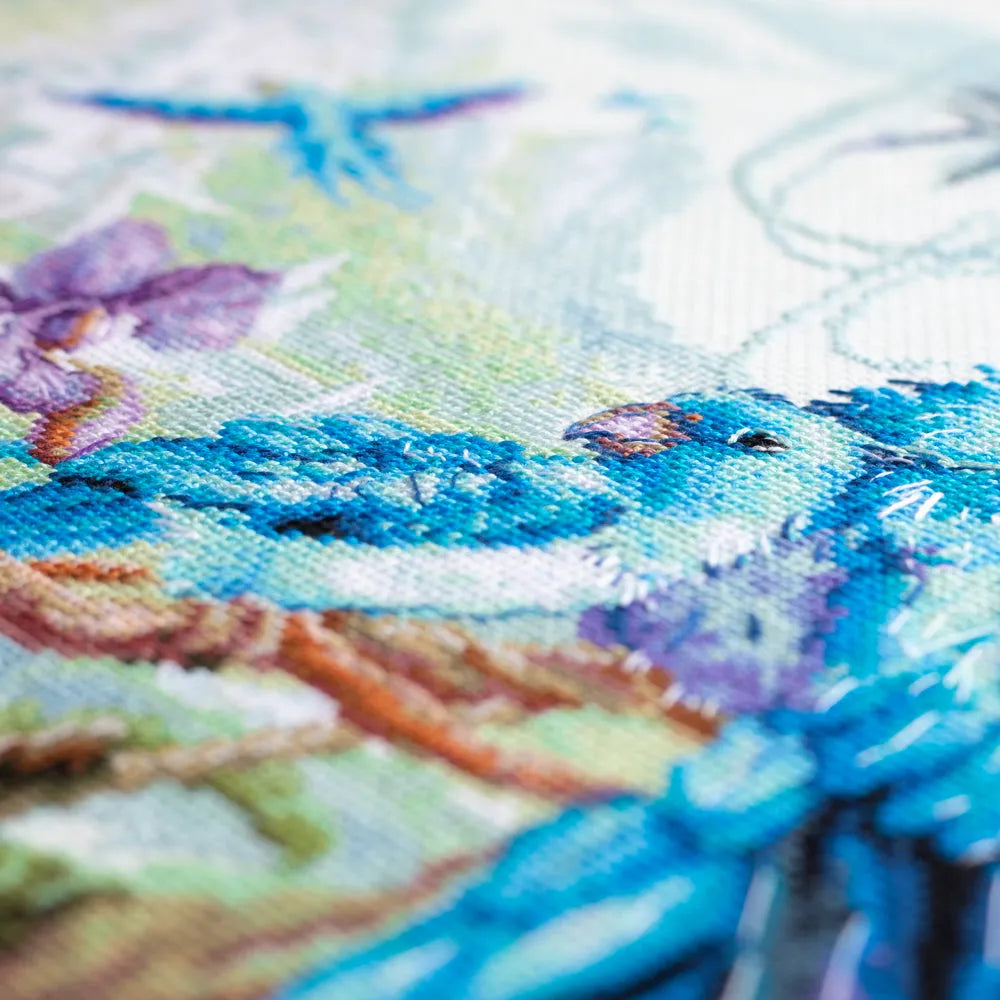 Kit contains: Fabric Zweigart Aida 14 (light blue), Threads: mouline DMC, Number of Colors:37. Embroidery instructions in English, German, French and Spanish; color symbol scheme. Dimensions: 40*30cm / 15,75*11,81inches
