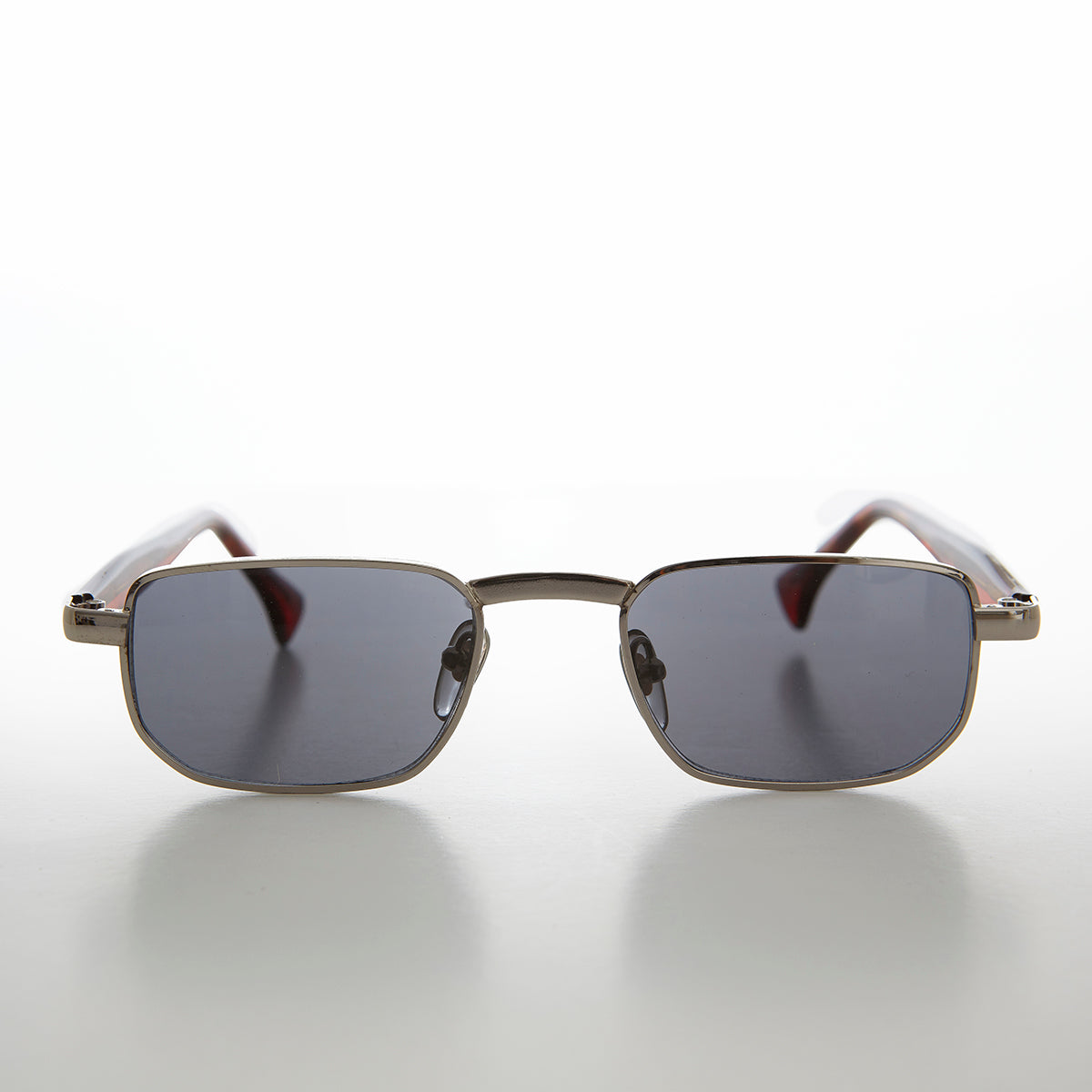 This timeless, narrow, rectangular sunglass has a metal and acetate combination frame. Wear them on the edge of your nose or not this timeless classic is a huge 90s trend. Optical quality frame.
