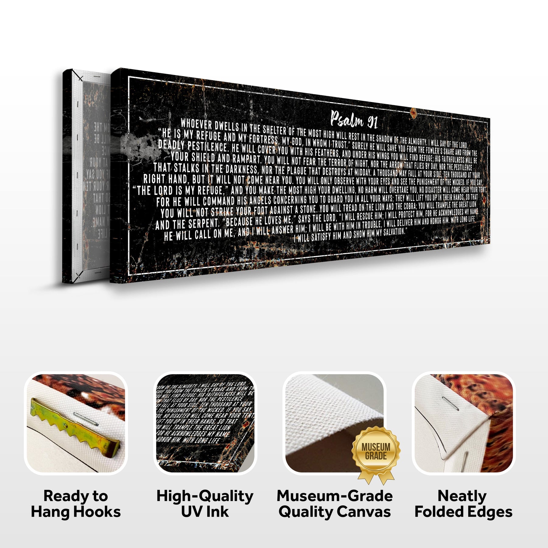 Psalm 91 is a beautiful expression of God's faithful protection over yourself and everyone else around you — no matter who they are or what they do in life. Now you can display this truth in your home or office with our Psalm 91 - He Is My Refuge sign. Made of high-quality canvas, this Psalm 91 - He Is My Refuge wall art is available in three sizes. Choose the size that fits best in your living space and enjoy the reminder that the Lord is your hiding and resting place through and through. Who knows? You’d probably change a life with it . Order your Psalm 91 - He Is My Refuge sign today!