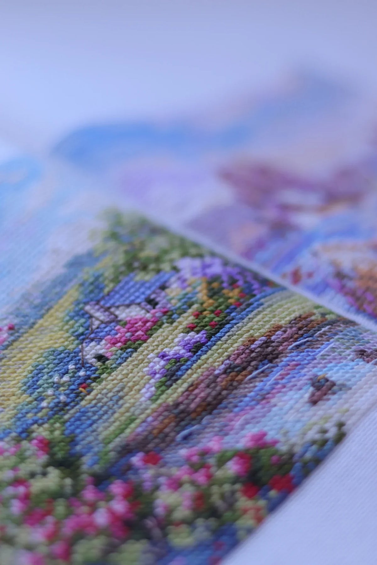 Kit contains: Canvas Zweigart Aida 16, white, DMC threads 37 colors, John James needles. The schema has colour symbols. There are two versions of schema with and without backstitches in each kit. 11,5x11,5 cm / 4,53x4,53 inches