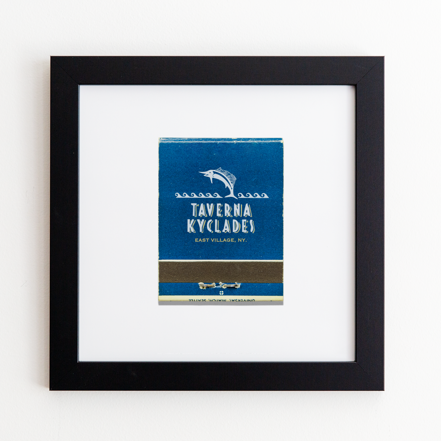 The Taverna Kyclades print showcases an iconic matchbook design.