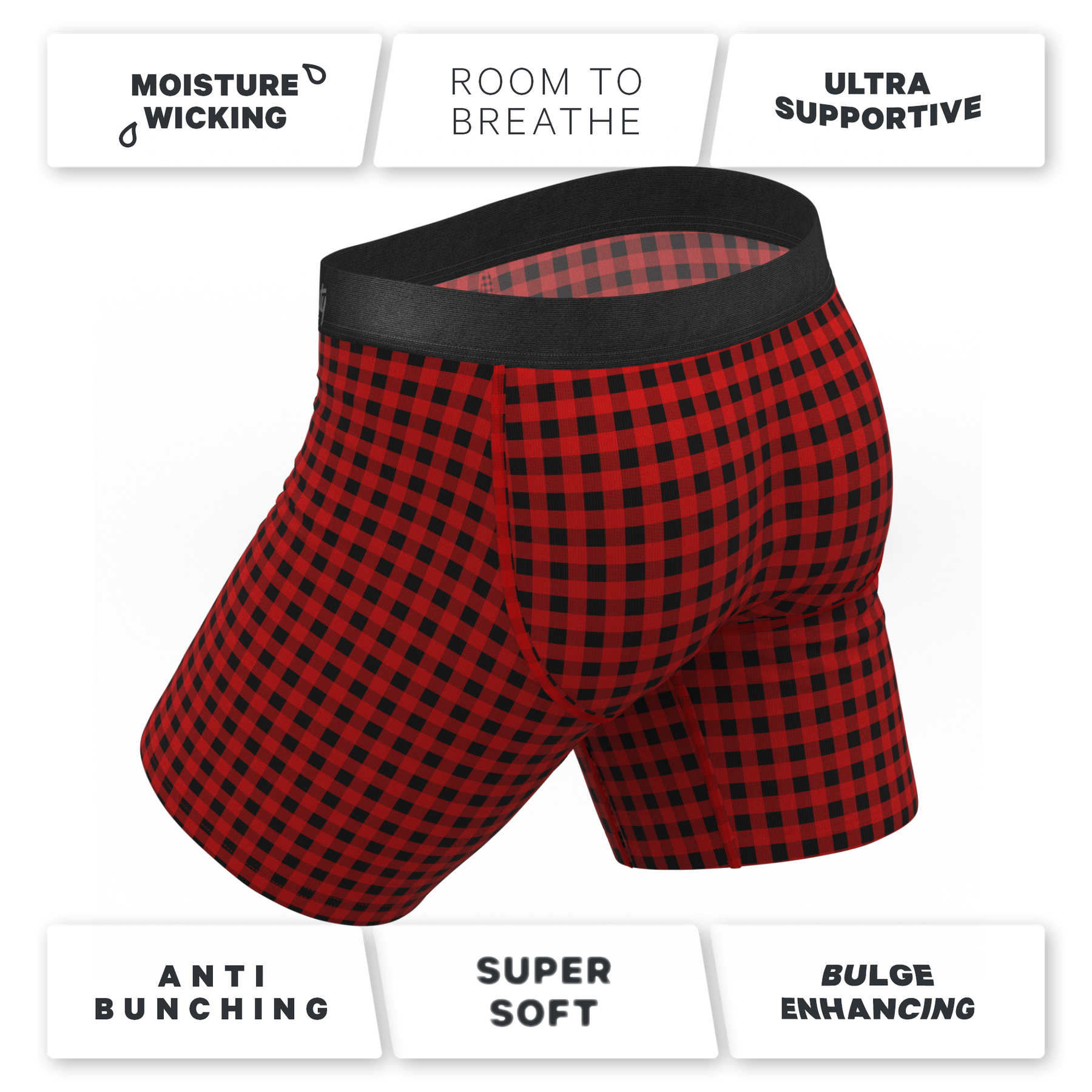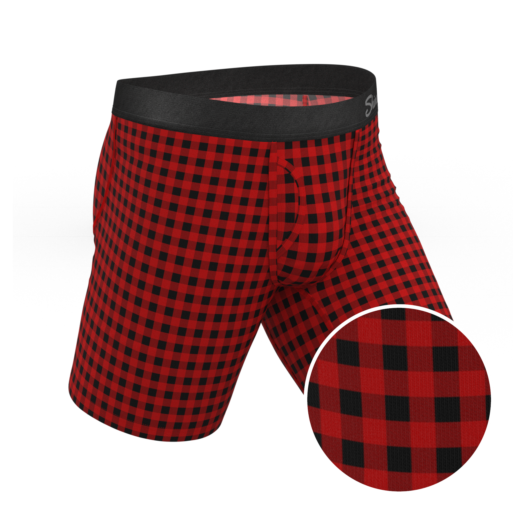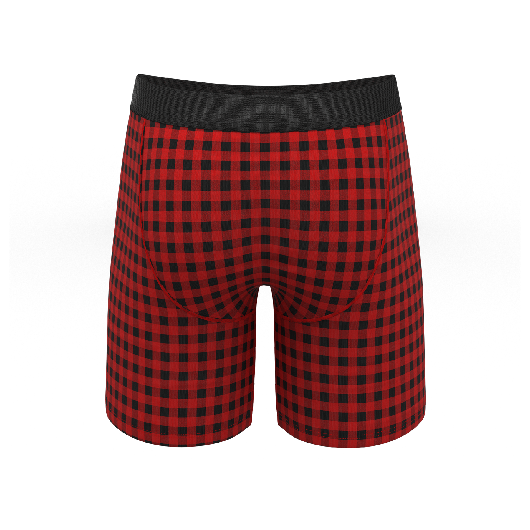 The Cardinal | Micro Buffalo Check Long Leg Ball Hammock® Pouch Underwear With Fly